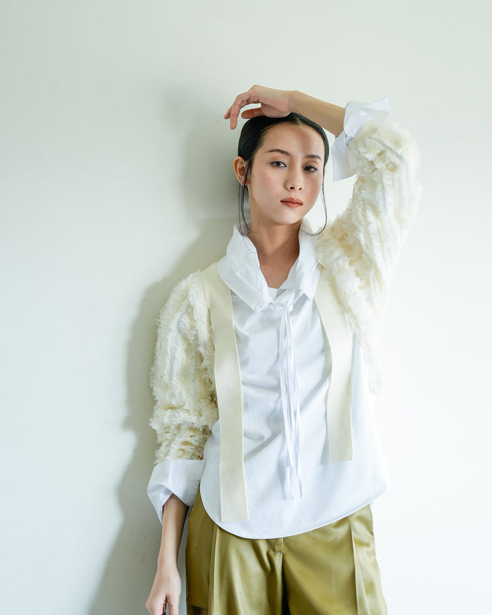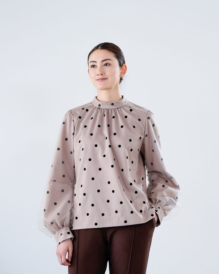 [10/8発売]チュールスリーブドットブラウス