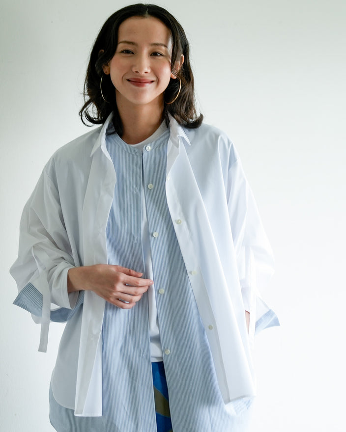 [3/4発売]バックプリーツレイヤードシアーシャツ