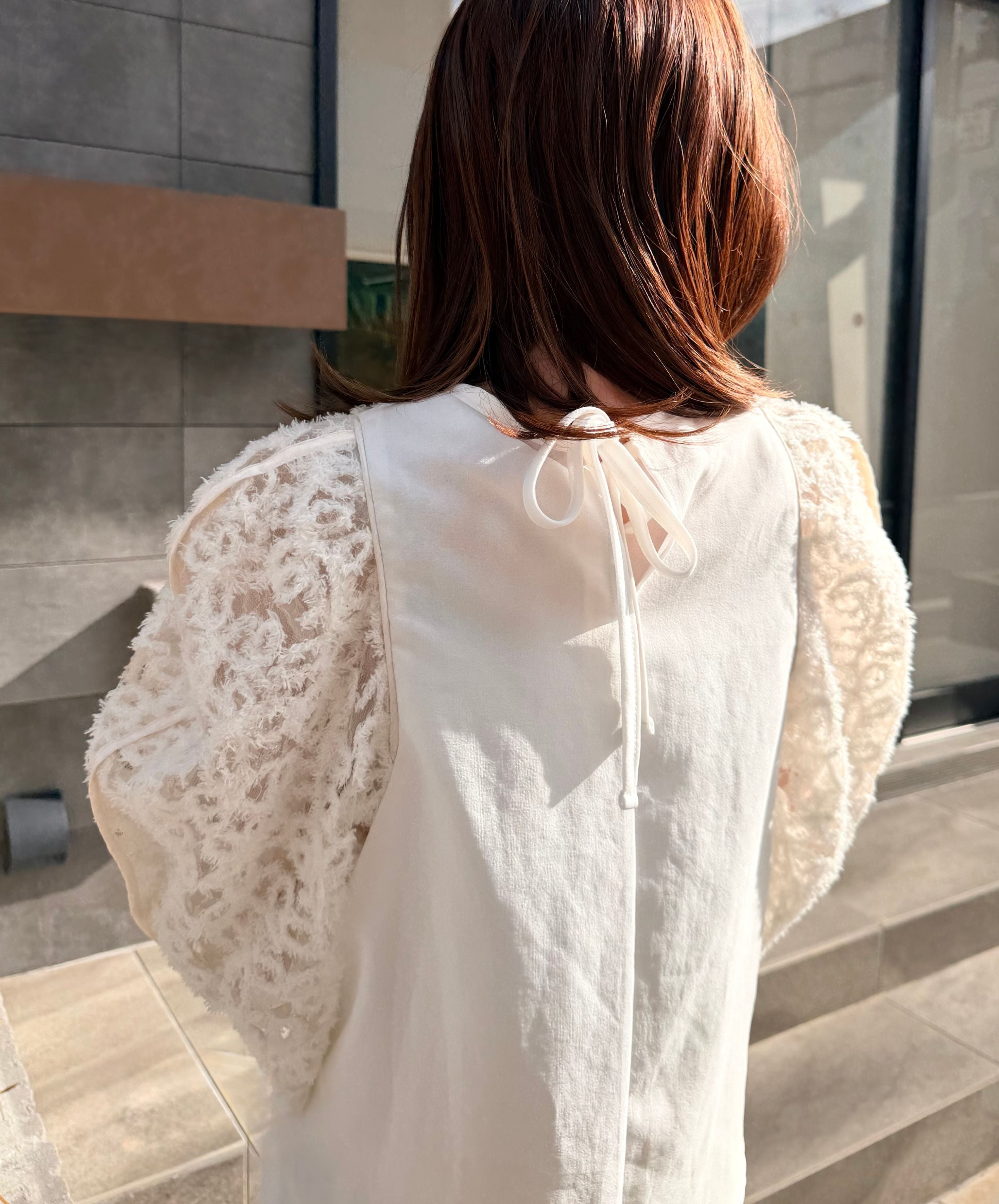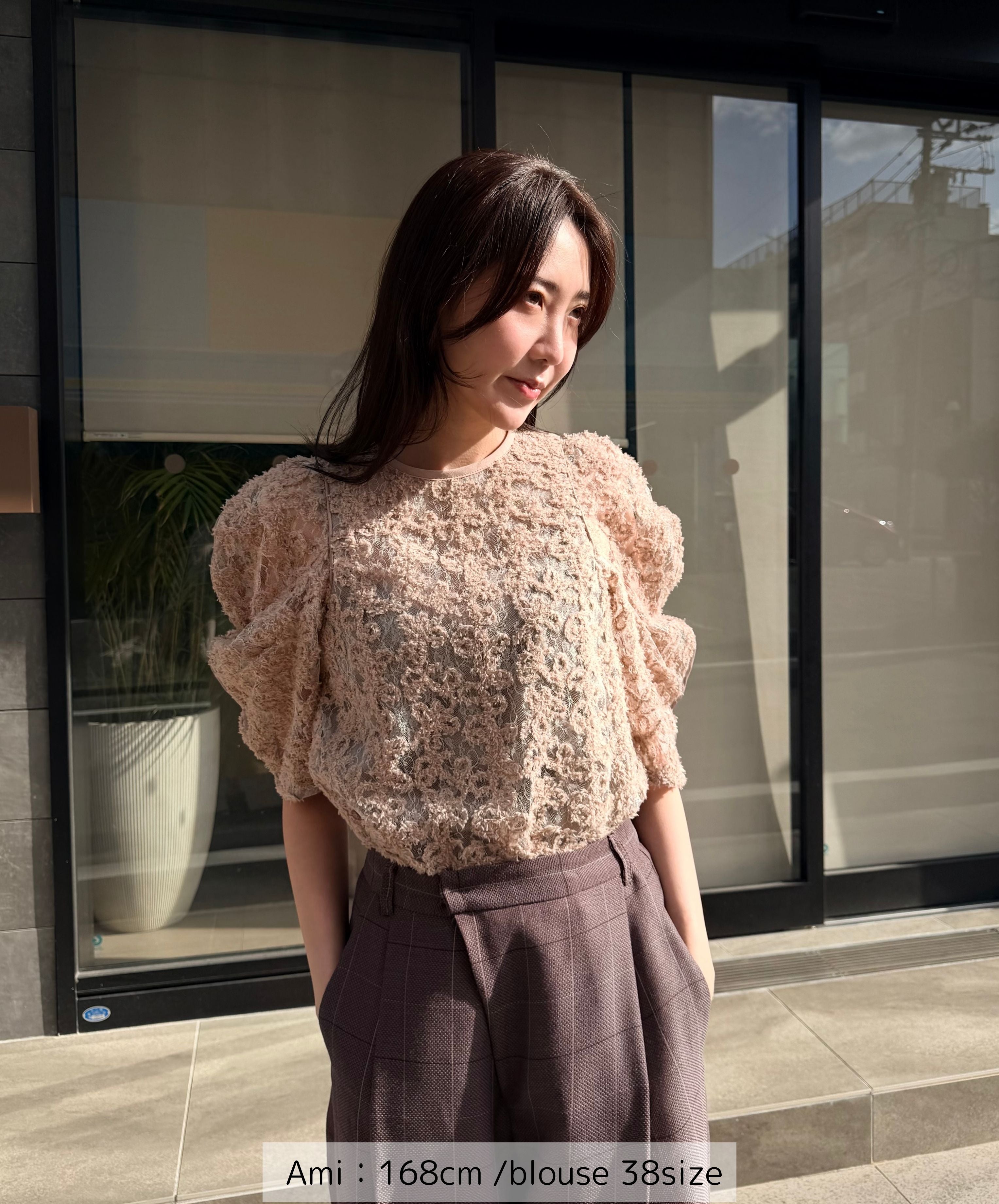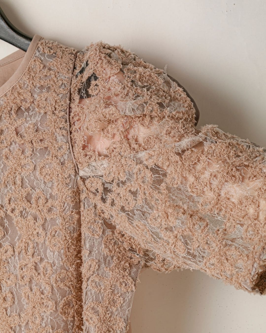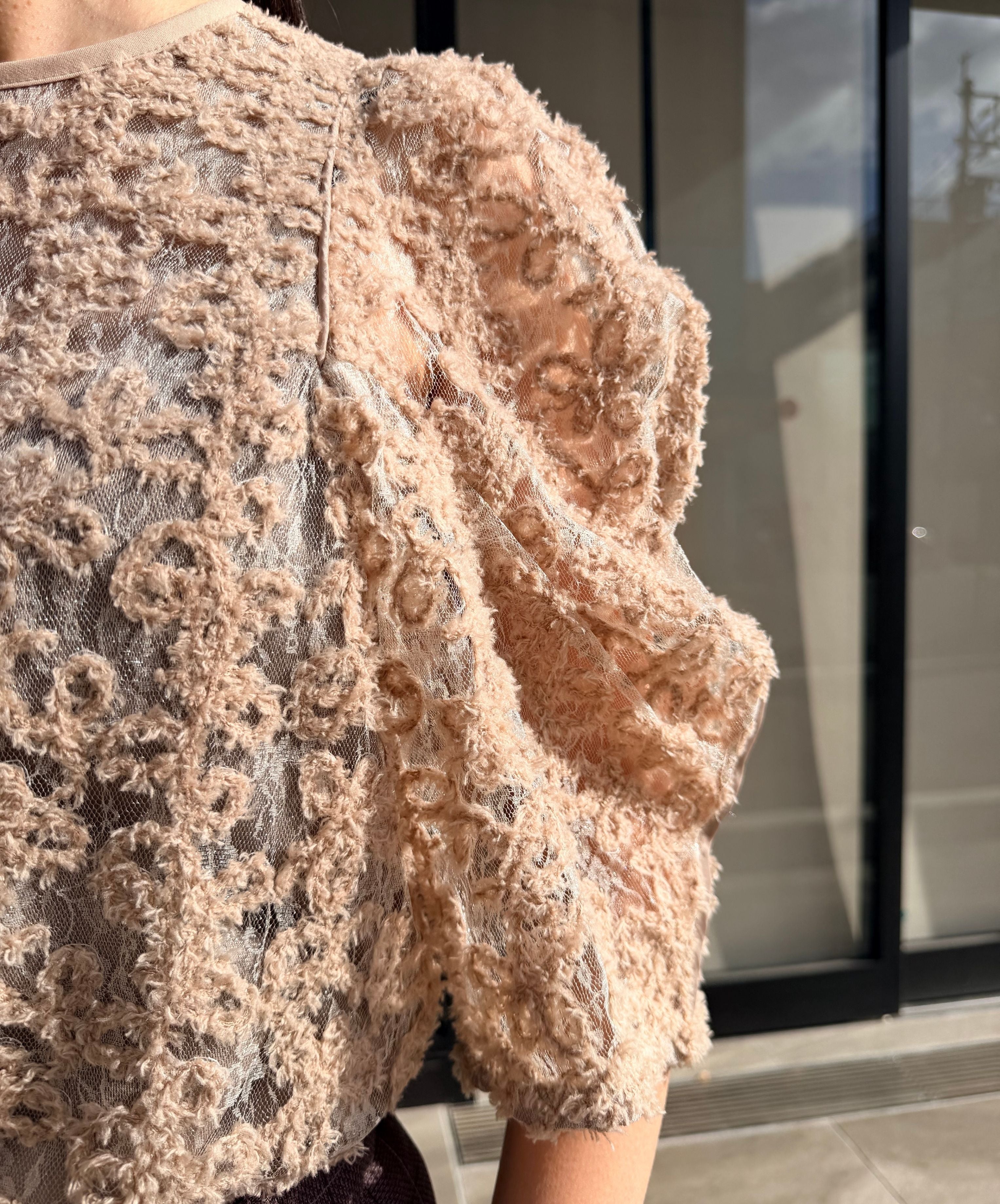 一枚で絵になる春らしくフェミニンな印象のレースブラウス。インパクトのある立体的なモールレースジャガードとアイコニックな袖で甘さとモードさを演出する一枚です。ふんわりと浮かび上がるモールレースが、一枚で主役級の存在感を発揮。大人のフェミニンスタイルに差別化をもたらす構築的なデザインはLallia Múの意匠的な立体裁断から生まれています。合わせるボトム次第でフォーマルにもカジュアルにも対応可能。きれいめボトムと合わせて、オケージョンスタイルにもおすすめです。袖のシルエットをなぞるように丁寧に施されたパイピングが全体を引き締め、甘い中にも大人のこだわりを感じさせる一枚です。