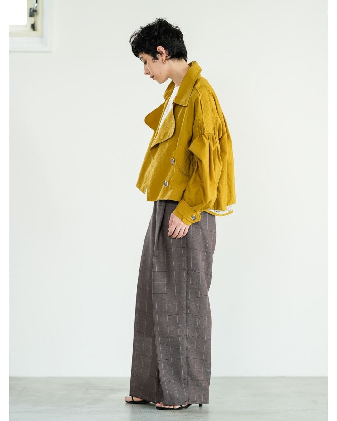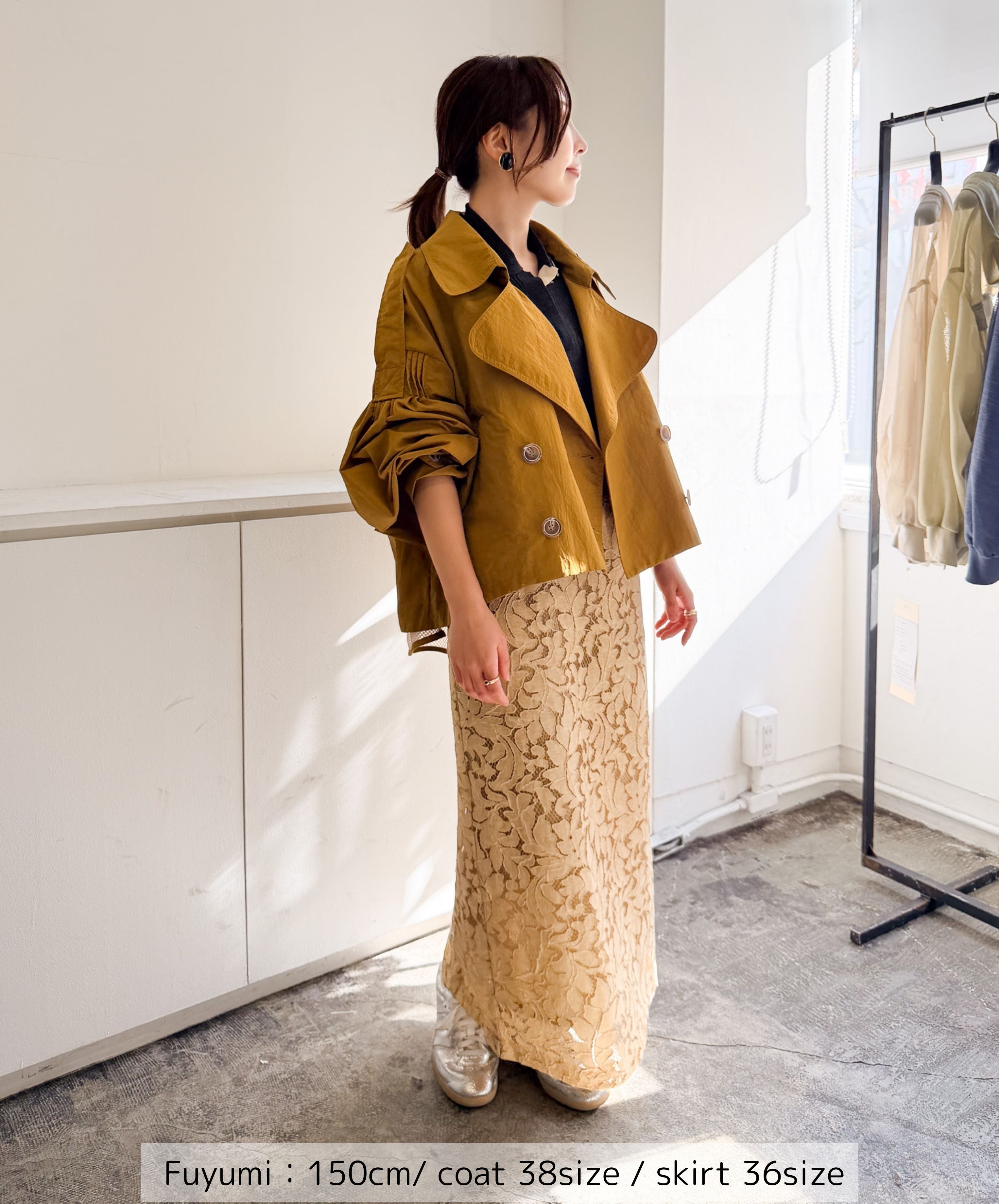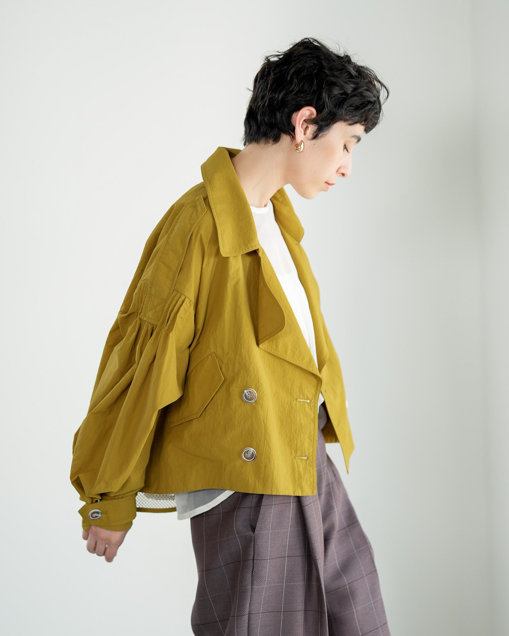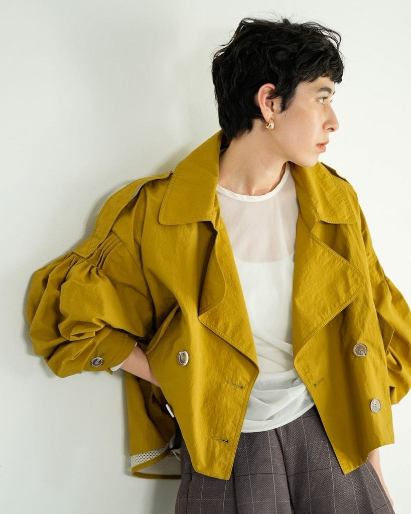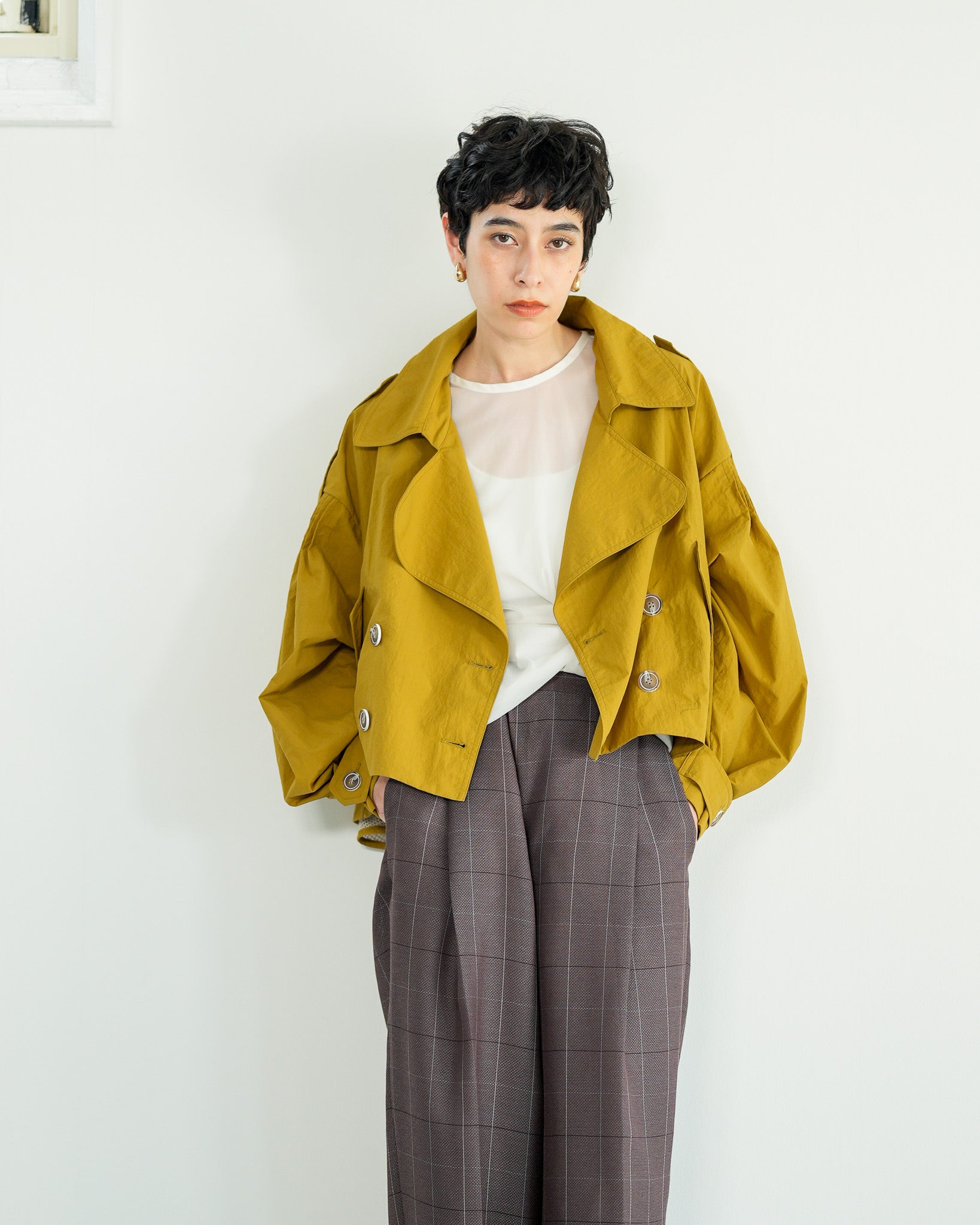 ショート丈ながら美しいシルエットと軽やかな抜け感。裾に向かってふんわりと広がるテントラインが、シンプルながらも女性らしい優雅さを演出します。