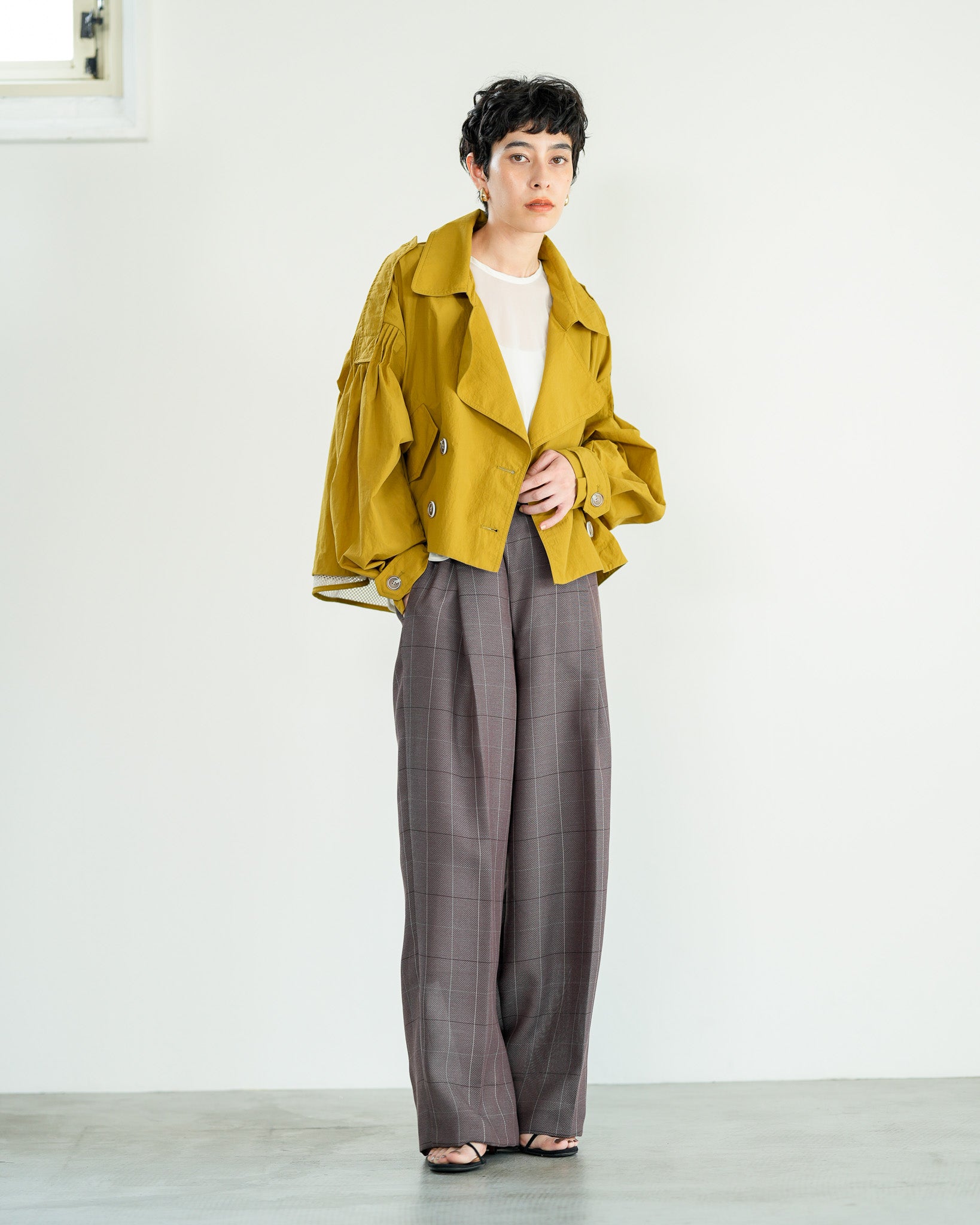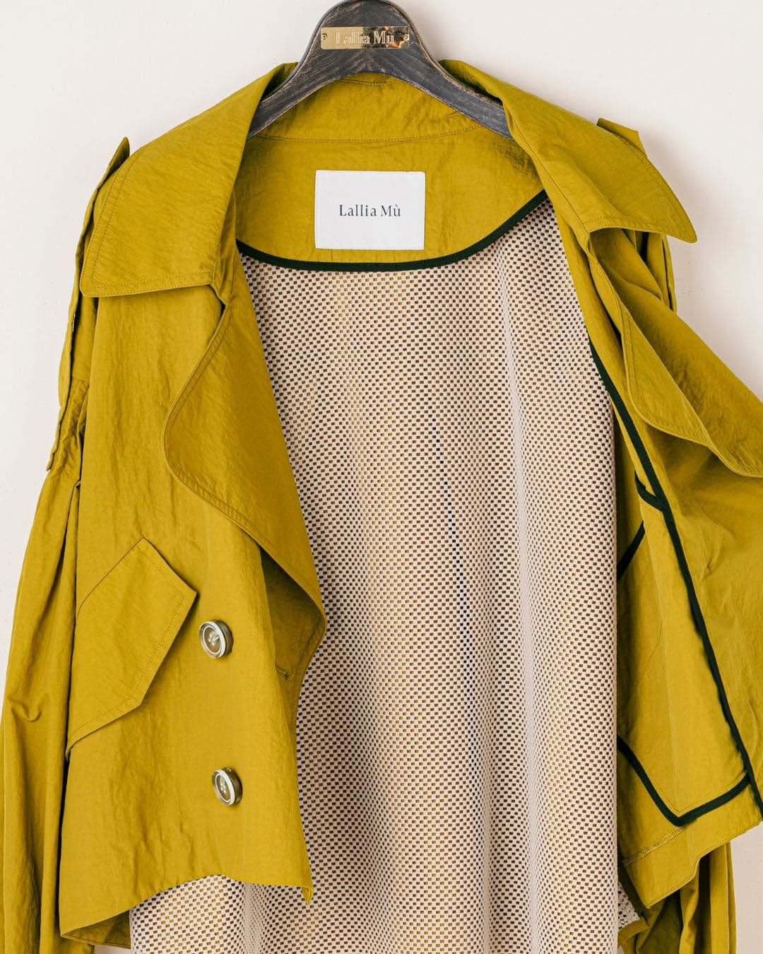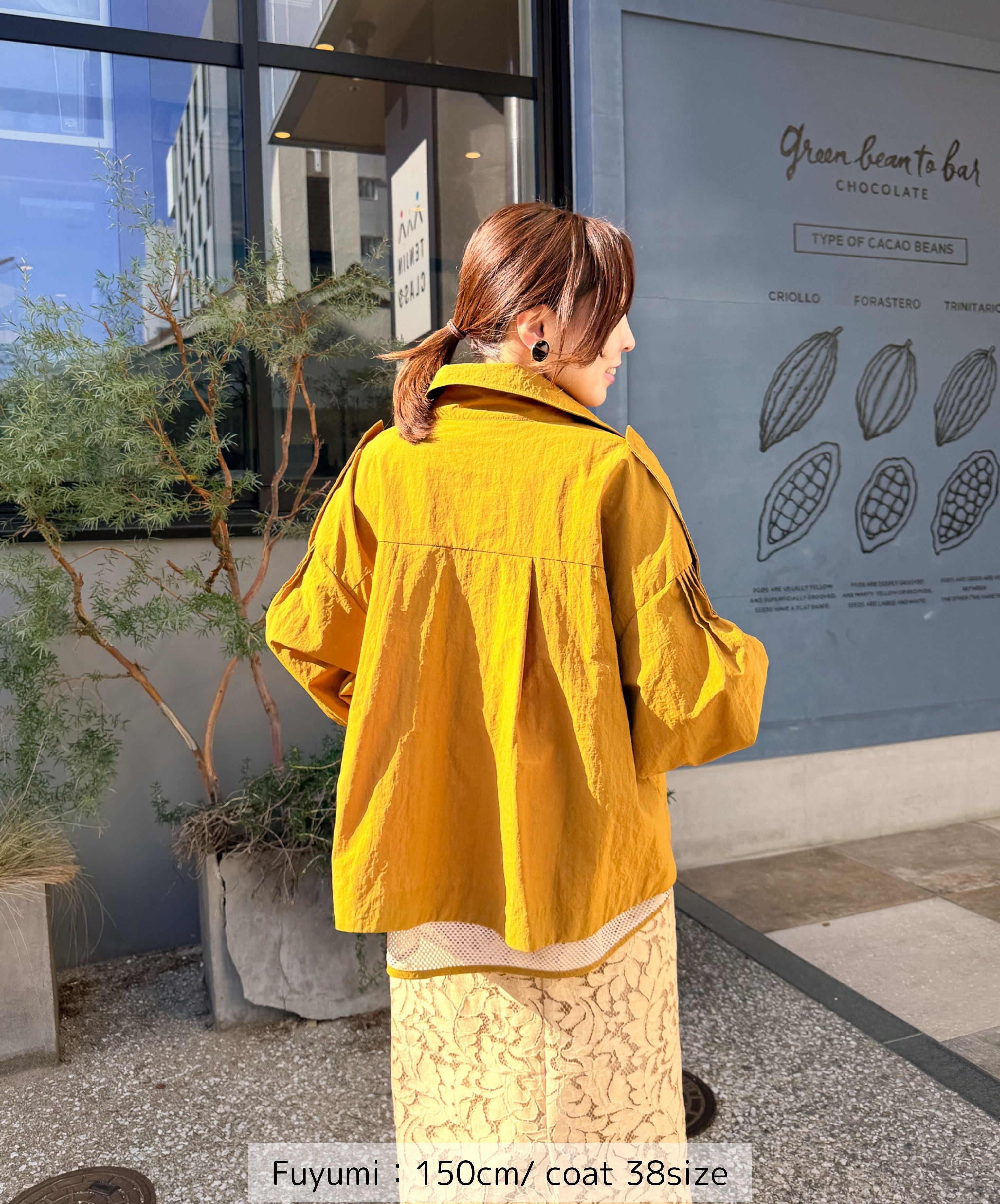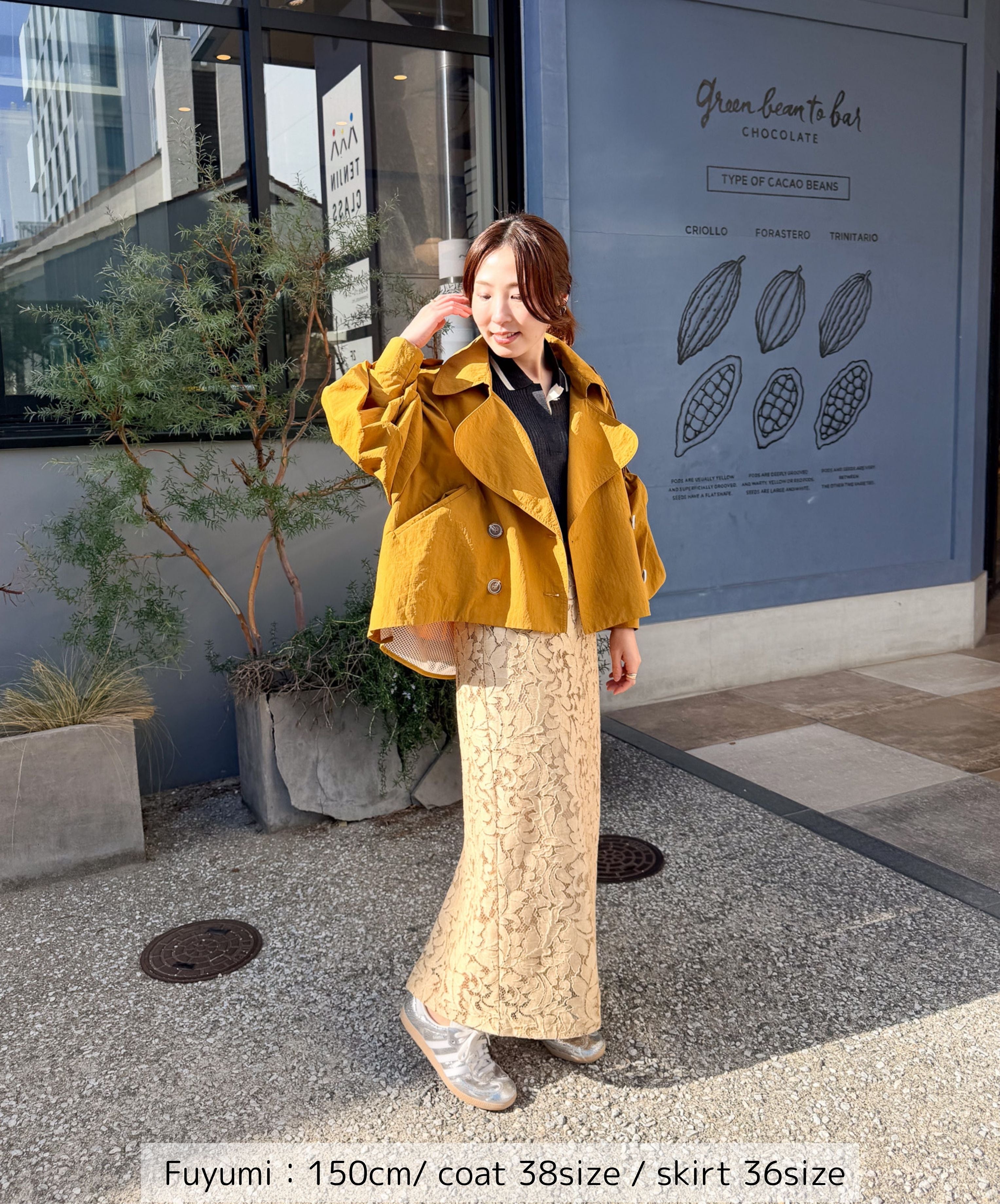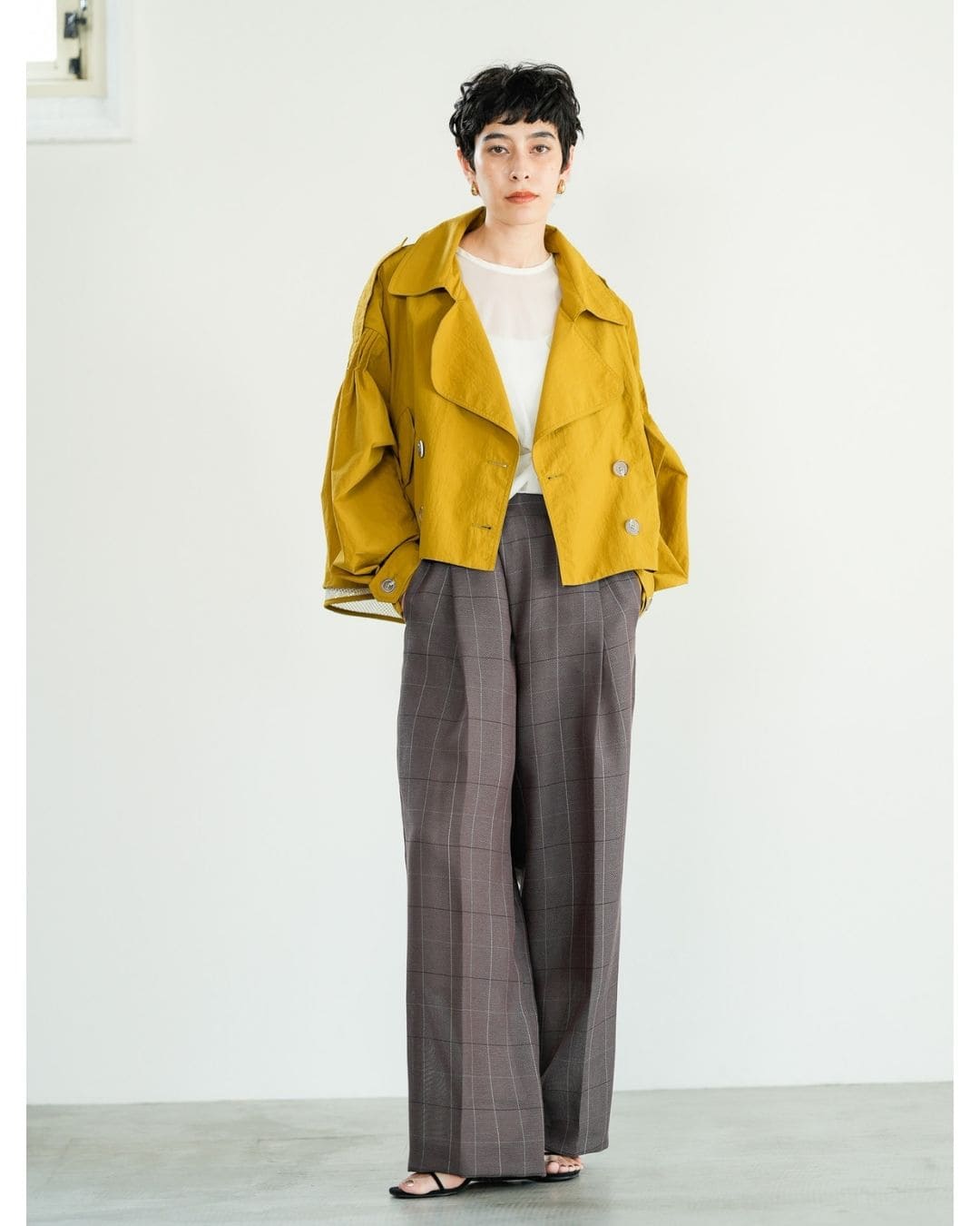 ショート丈ながら美しいシルエットと軽やかな抜け感。裾に向かってふんわりと広がるテントラインが、シンプルながらも女性らしい優雅さを演出します。