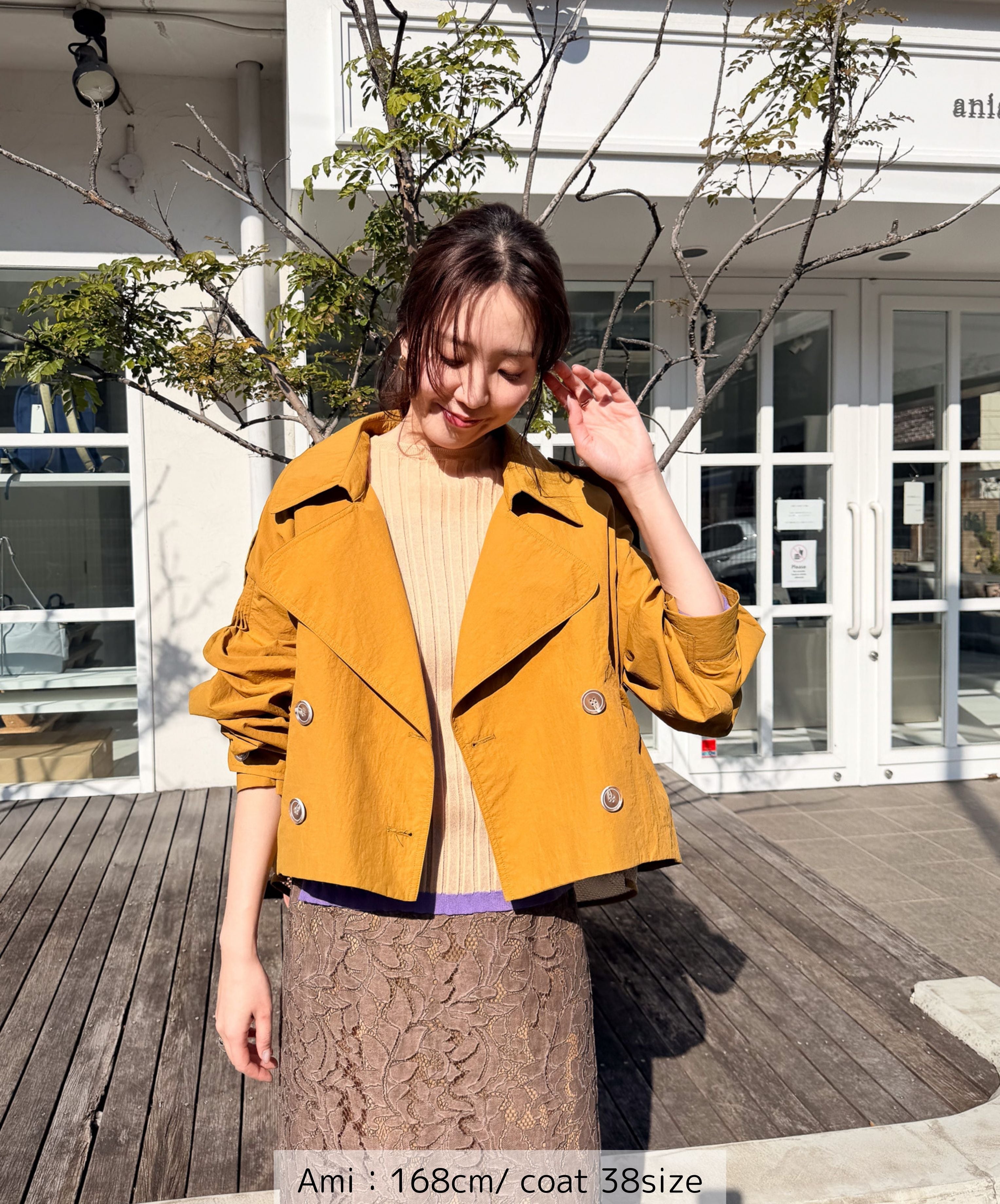 着こなしにメリハリがつき、パンツスタイルからスカートまで、どんなボトムスにも合わせやすいバランスの良い丈感です。