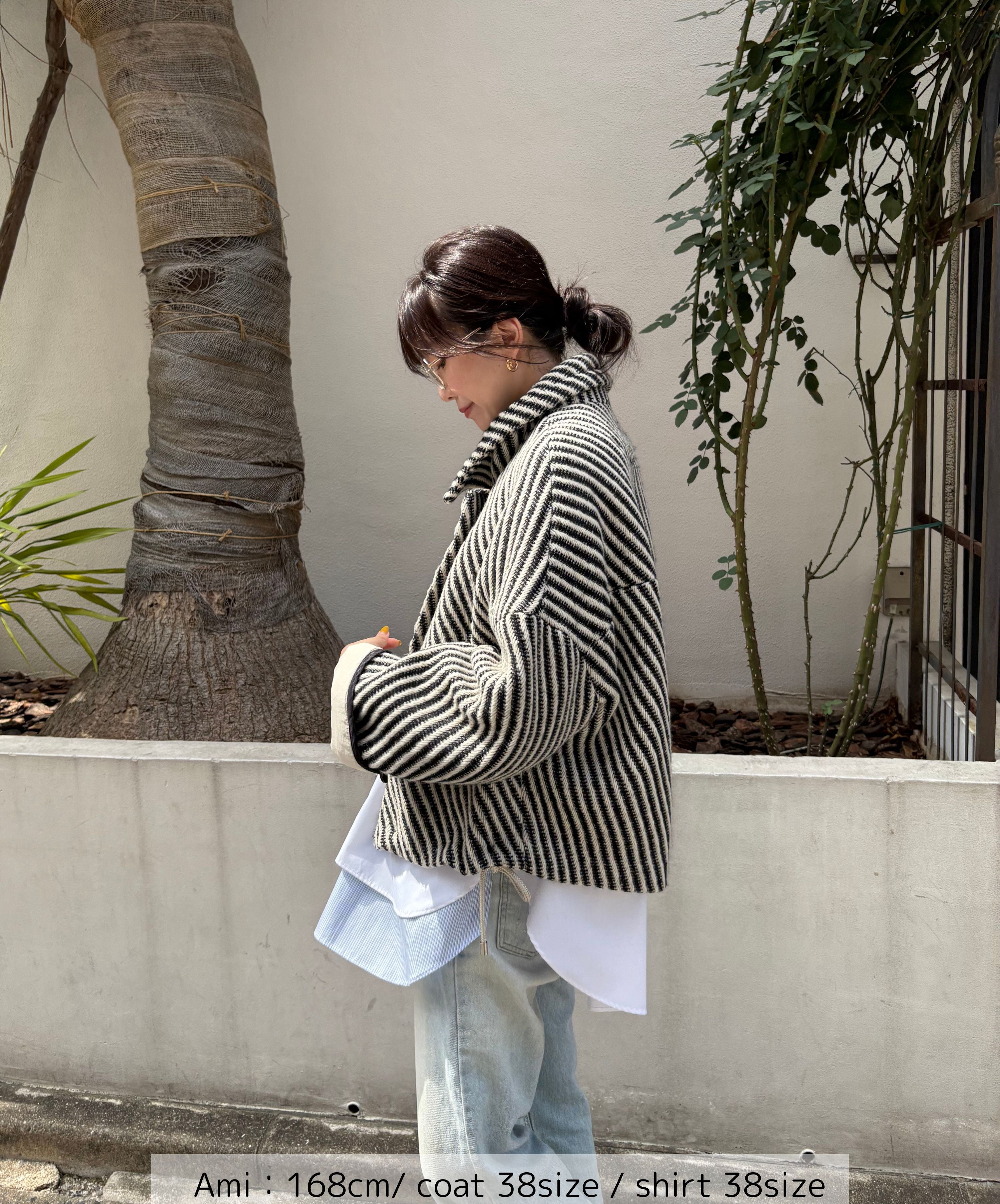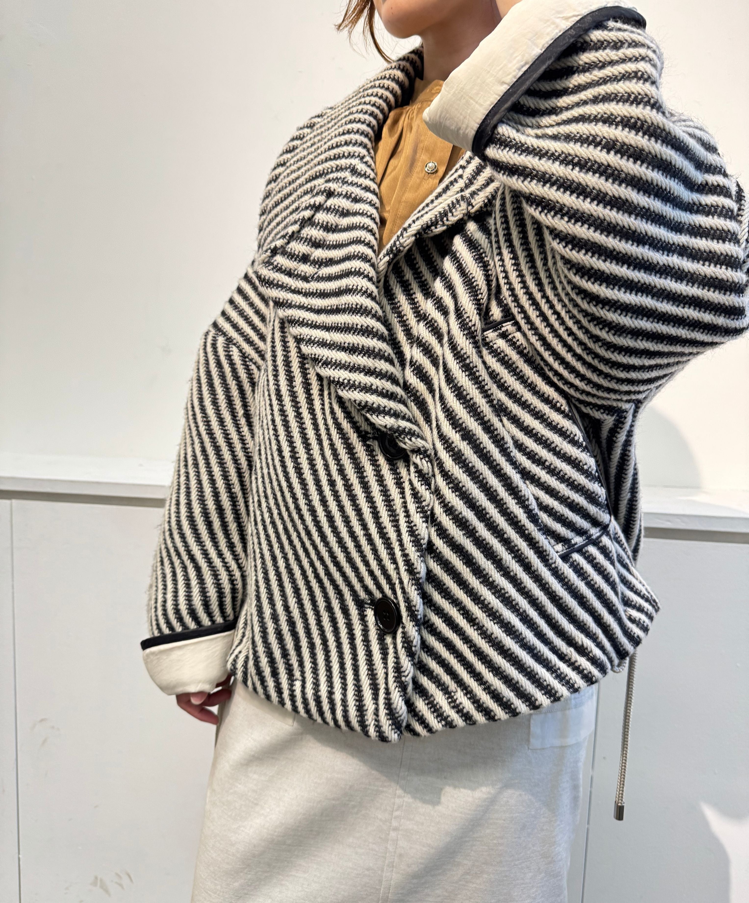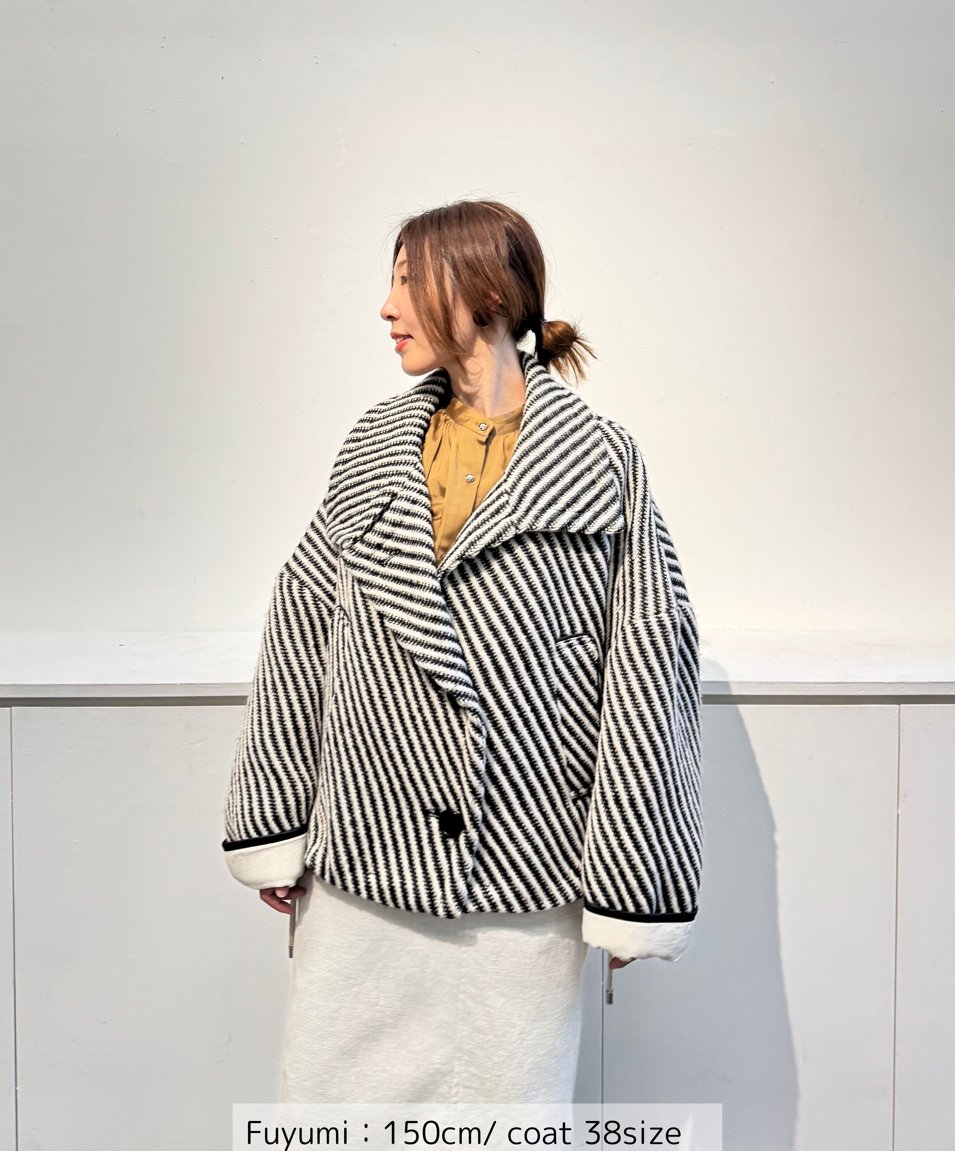 大人の余裕をまとう上質ウールツイードコート。大きめの衿が顔周りを華やかに、そしてエレガントに見せてくれます。上質なウールツイード素材はあたたかく朝晩の寒さが気になる時にも重宝し、サッと羽織るだけで上品なスタイルが決まります。袖は折り返して着用できるので、全体のバランスに合わせてアレンジ可能。スカートやパンツどちらとも相性がよく、ボトムやインナーを選ばず様々なシーンで活躍してくれる冬の着映えコートです。