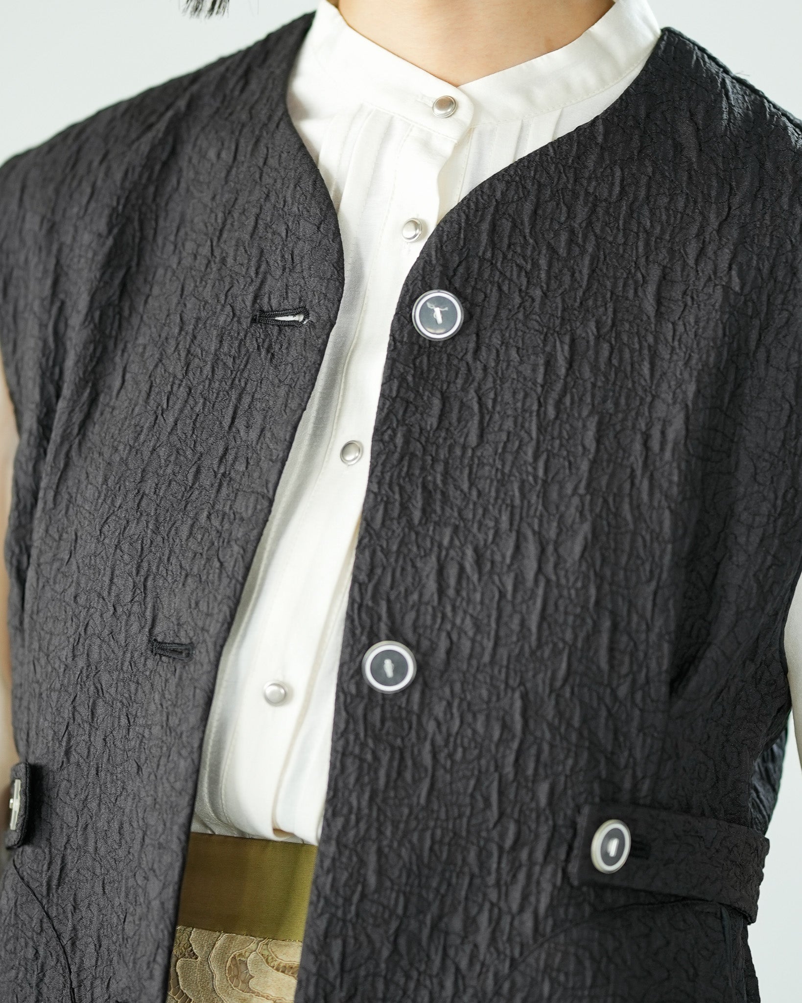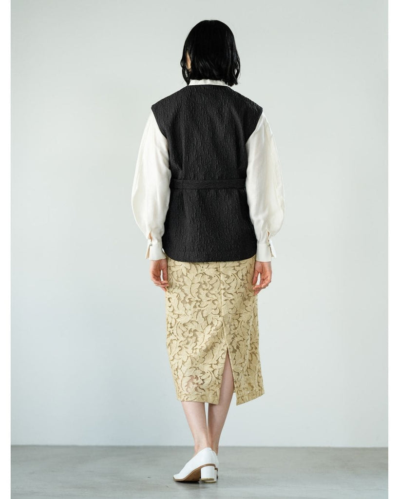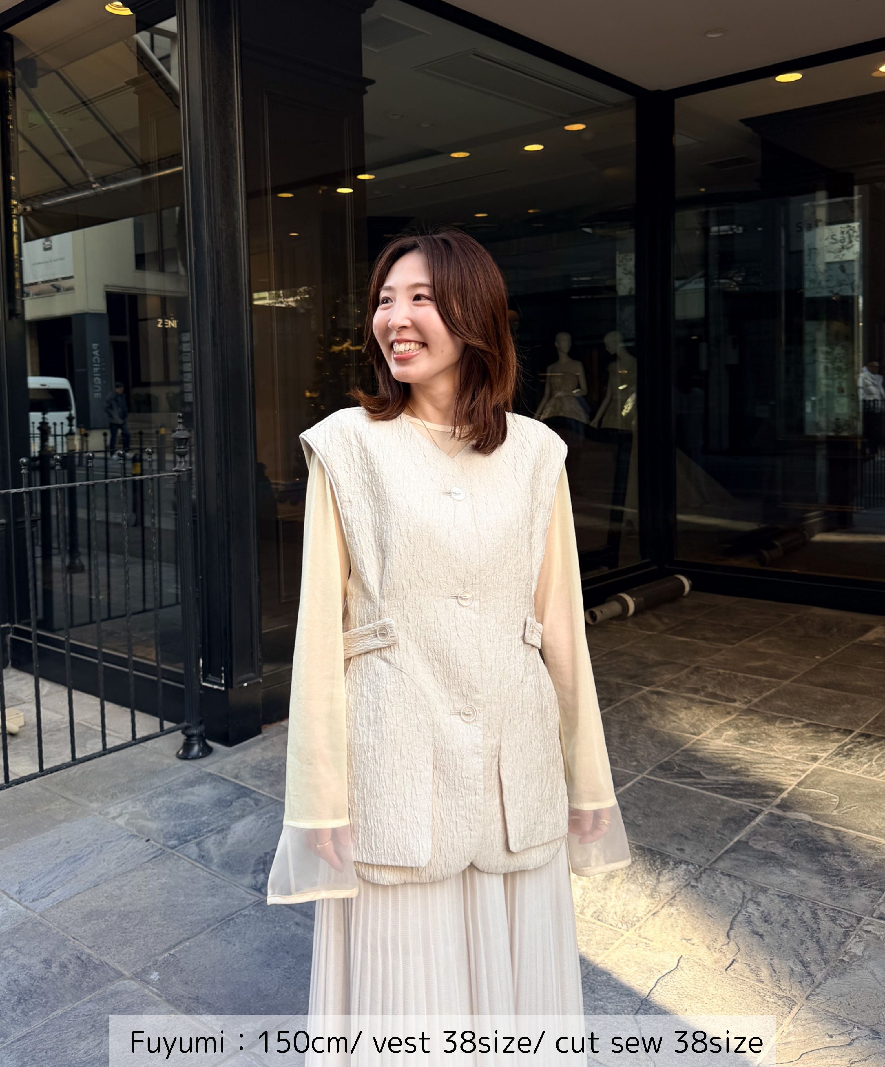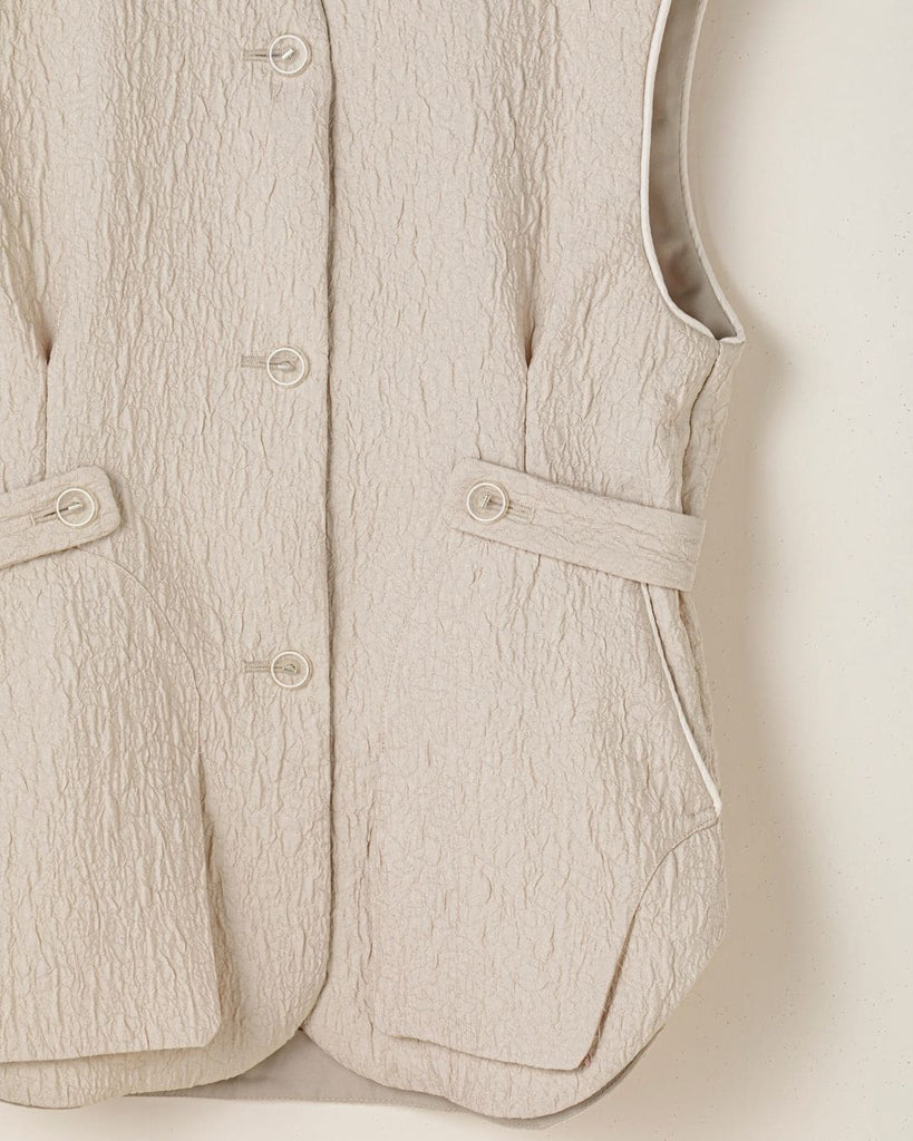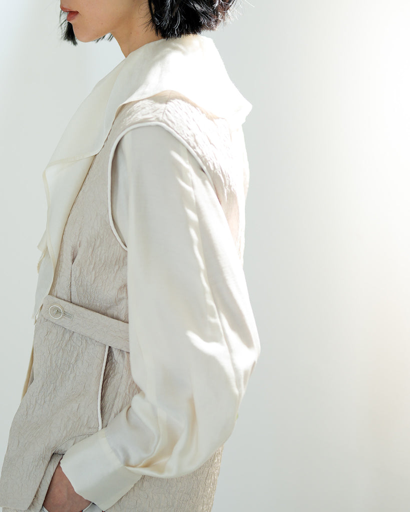 まとうだけでスタイリッシュに決まる、感度高めなふくれジャガードベスト。いつものスタイルにプラスするだけで、グッと洗練された印象に。トレンドのふくれジャガード素材を使用したデザインベストです。ふんわりと立体感のある素材がシンプルながらも表情豊かなムードを演出。裾は柔らかな曲線を描く、ラウンドヘムで、気になる腰回りをさりげなくカバーしながら、女性らしい雰囲気をかもします。同素材のスカート合わせれば、セットアップスタイルでも着用でき、セレモニーシーンなどオケージョンにもおすすめです。インナーを選ばず、ニットからカットソー、ブラウスなど着こなしの幅も広く、季節の変わり目や着こなしに悩んだ時に頼れる、大人のワードローブの新定番アイテムです。