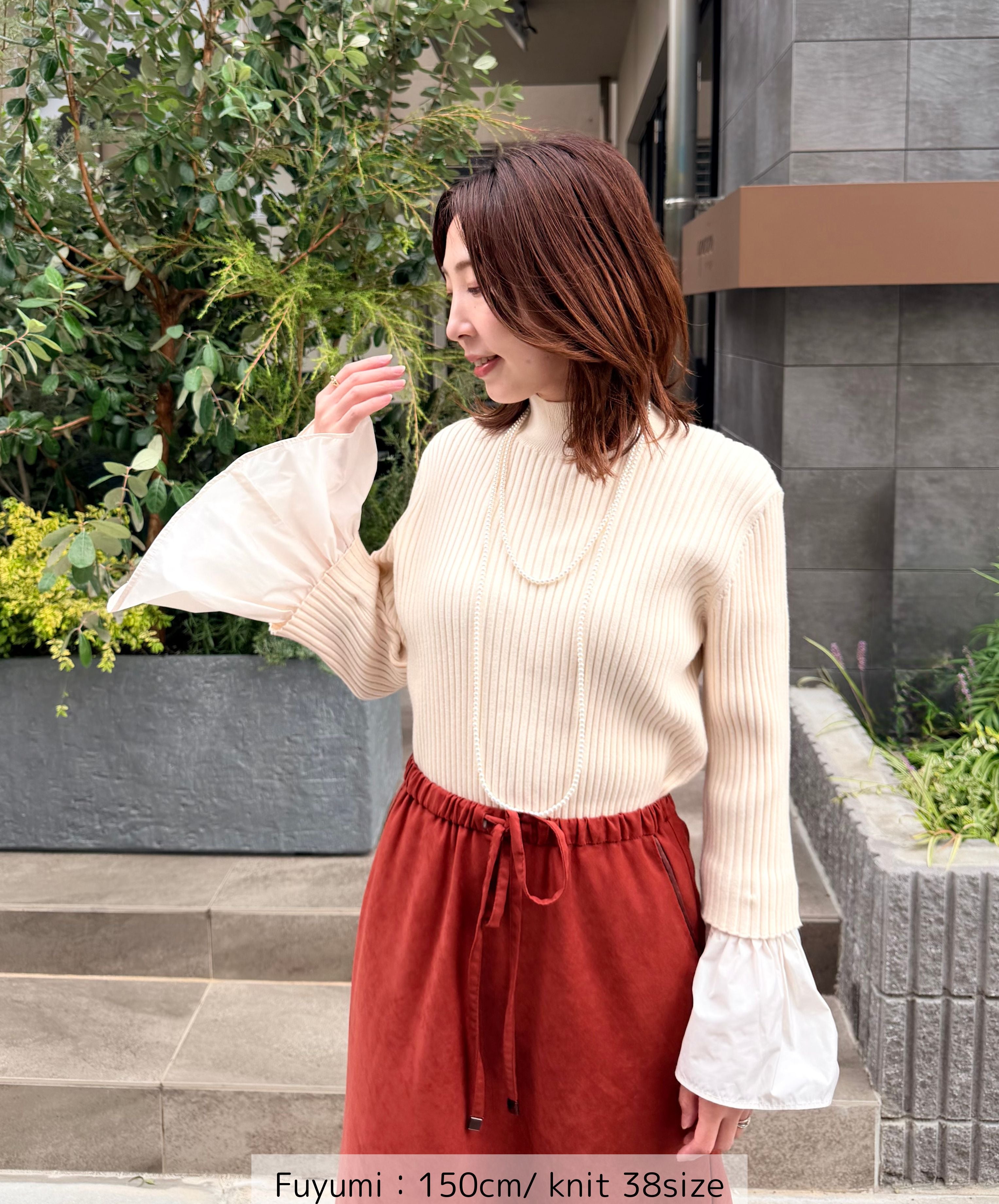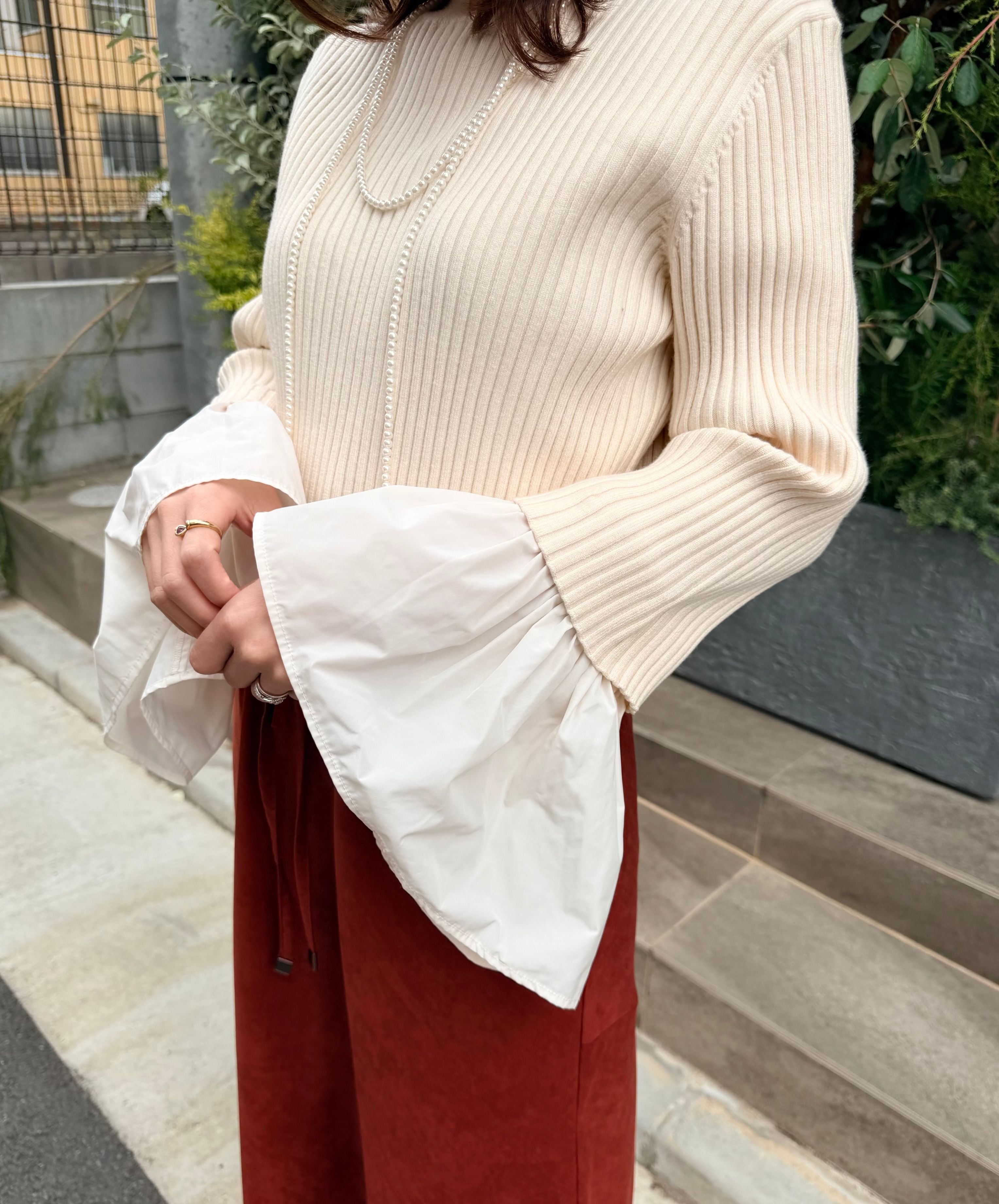 シーンに合わせて着こなせる2way仕様のハイゲージリブニット。毛羽のないハイゲージのリブ編みは身体のラインを拾いすぎず、しっかりとした肉感でインナーの透けを気にすることななく一枚で安心して着用できるトップスニットです。手元のカフは取り外し可能な2way仕様。カフを外せばシンプルな七部袖ニットとしてより軽やかに着用でき、気温の変化やシーンに合わせて自由に表情を変えられるので着こなしの幅がグッと広がります。シンプルながら着る人の個性を引き立たせ、スタイリング次第でON/OFF幅広く着回すことが可能です。ベーシックなカラーに加えて、春先まで活躍するペールカラーもラインナップ。冬のダークトーンコーデに明るさを加えたり、春に軽やかに着こなしたりとロングシーズン楽しめる実力派アイテムです。