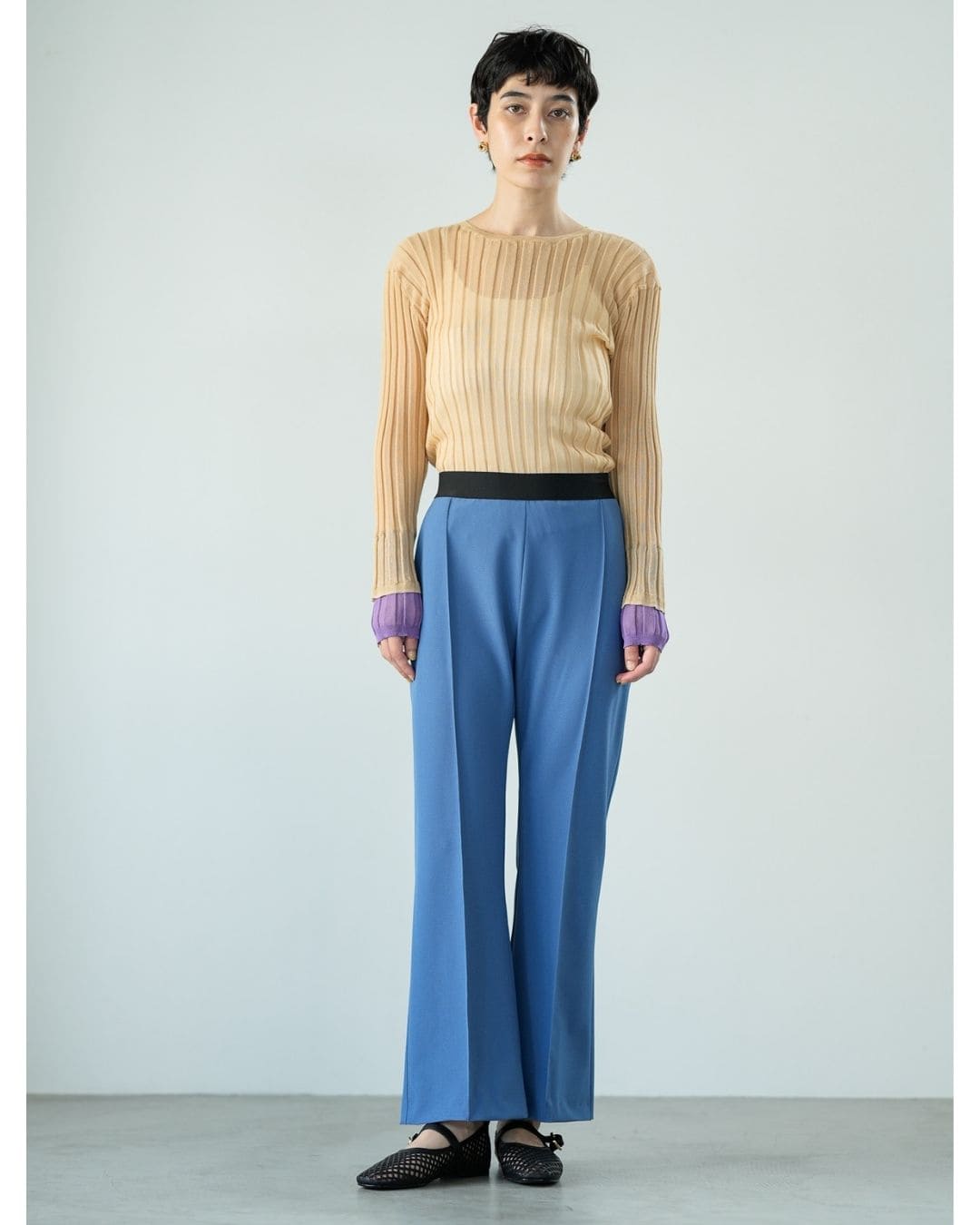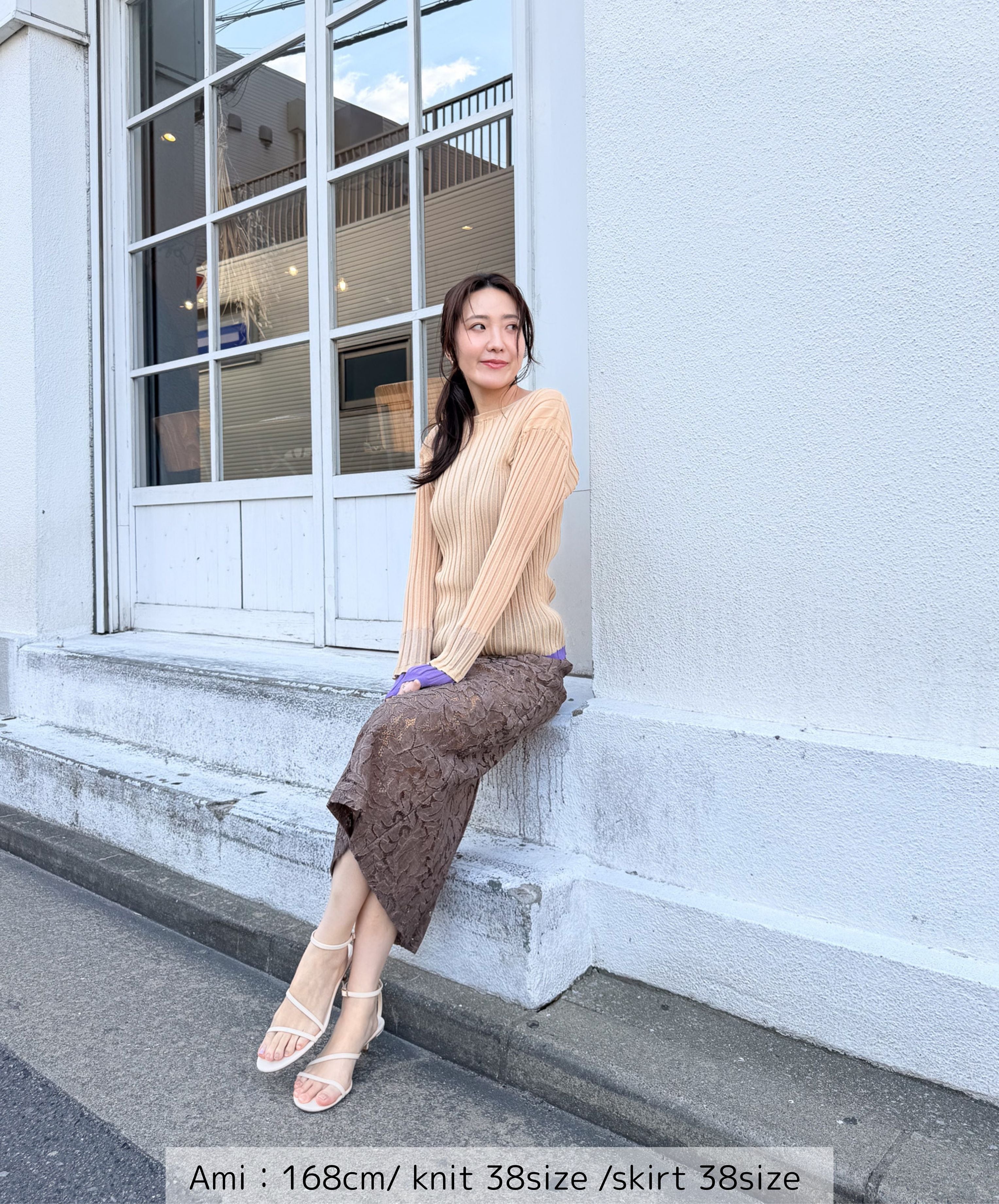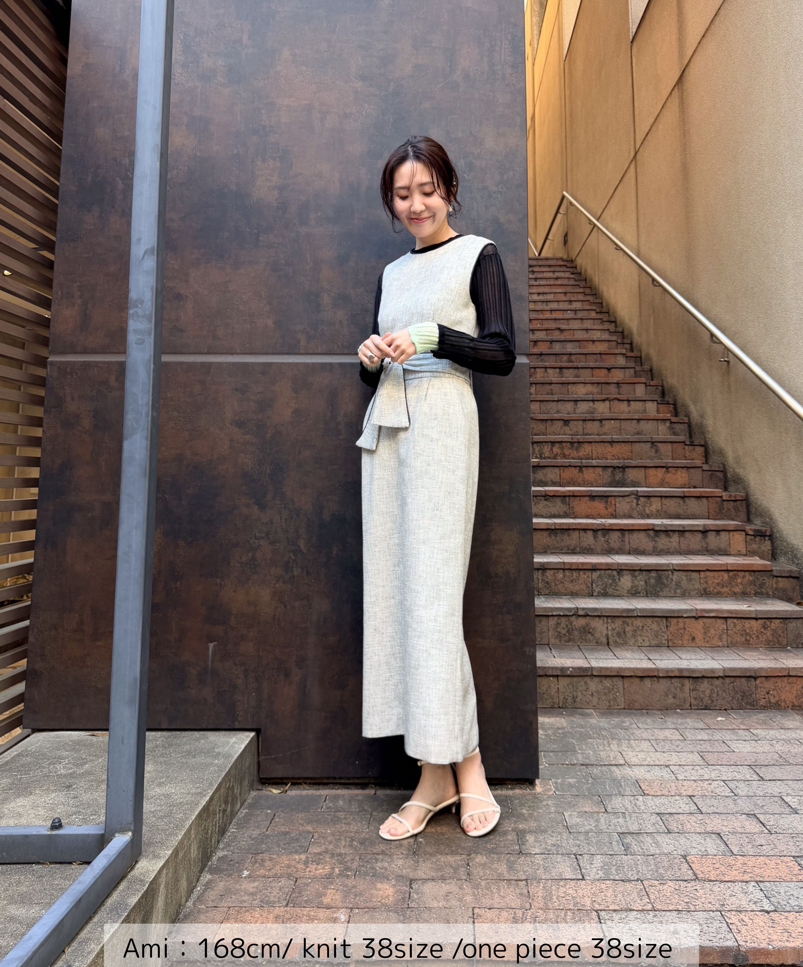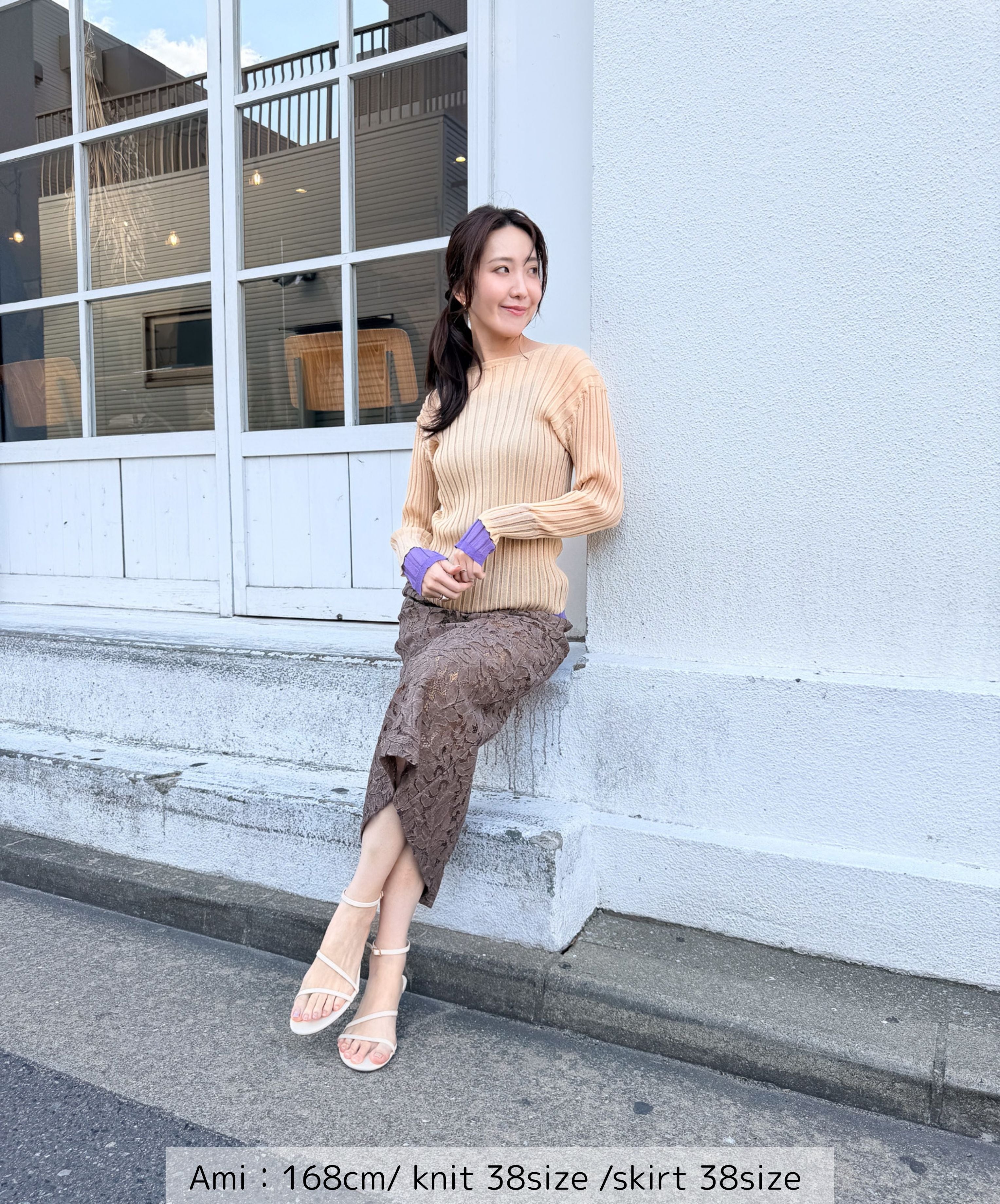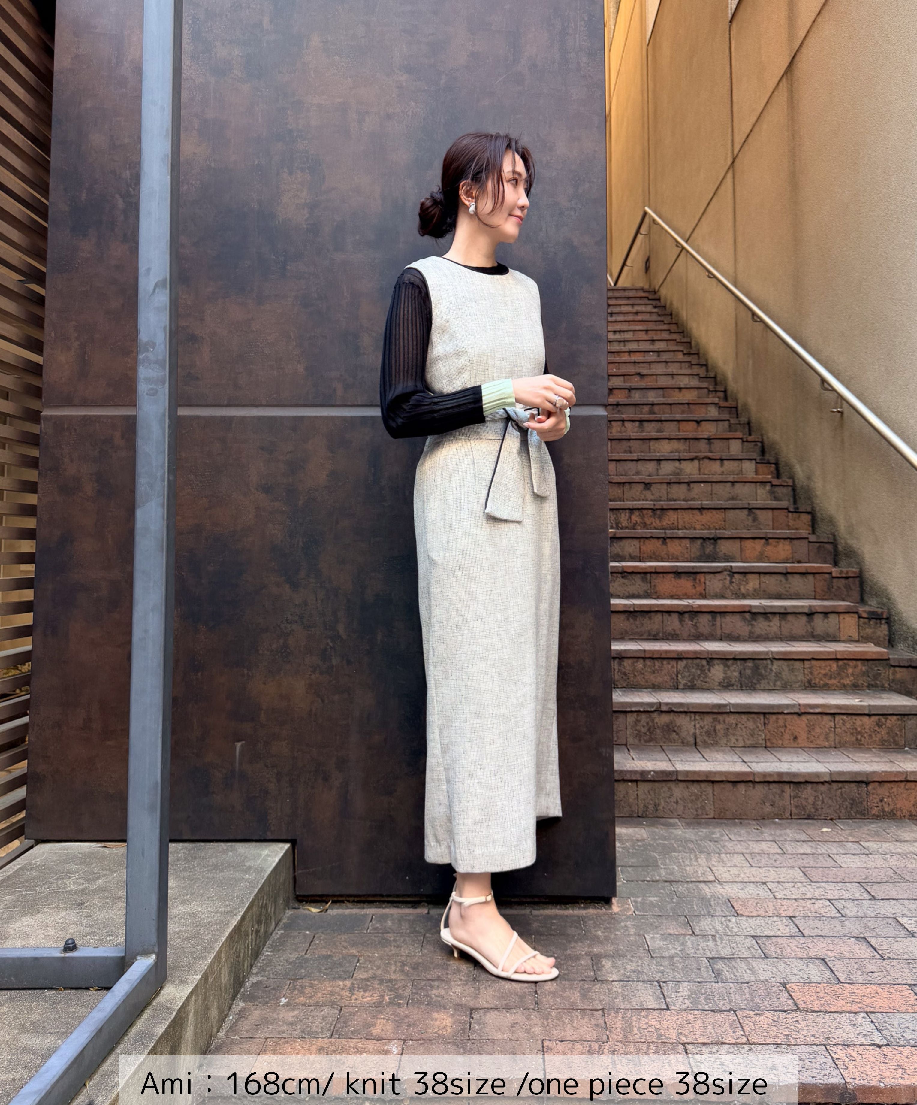 手元が2枚仕立てになったシアーリブニット。甘めに編み立てたリブの程よいシアー感がスタイルに透明感を出し、ミニマムで洗練された印象ながらバックシルエットは大胆にツイストすることでインパクトを。ラリアムーらしいバイカラーがスタイリングのアクセントとなりシンプルながら個性を感じる一枚となっています。アームホールはあえて若干のゆとりを入れることで動きやすさと胸元の張り付きを考慮した設計。バストの張り付きが気になりにくく、腰にはシングルスリットを入れることで自然に腰回りに沿うシルエットを作ります。ジャケットやシャツなどレイヤードスタイルのインナーとしても広く着用いただけます。