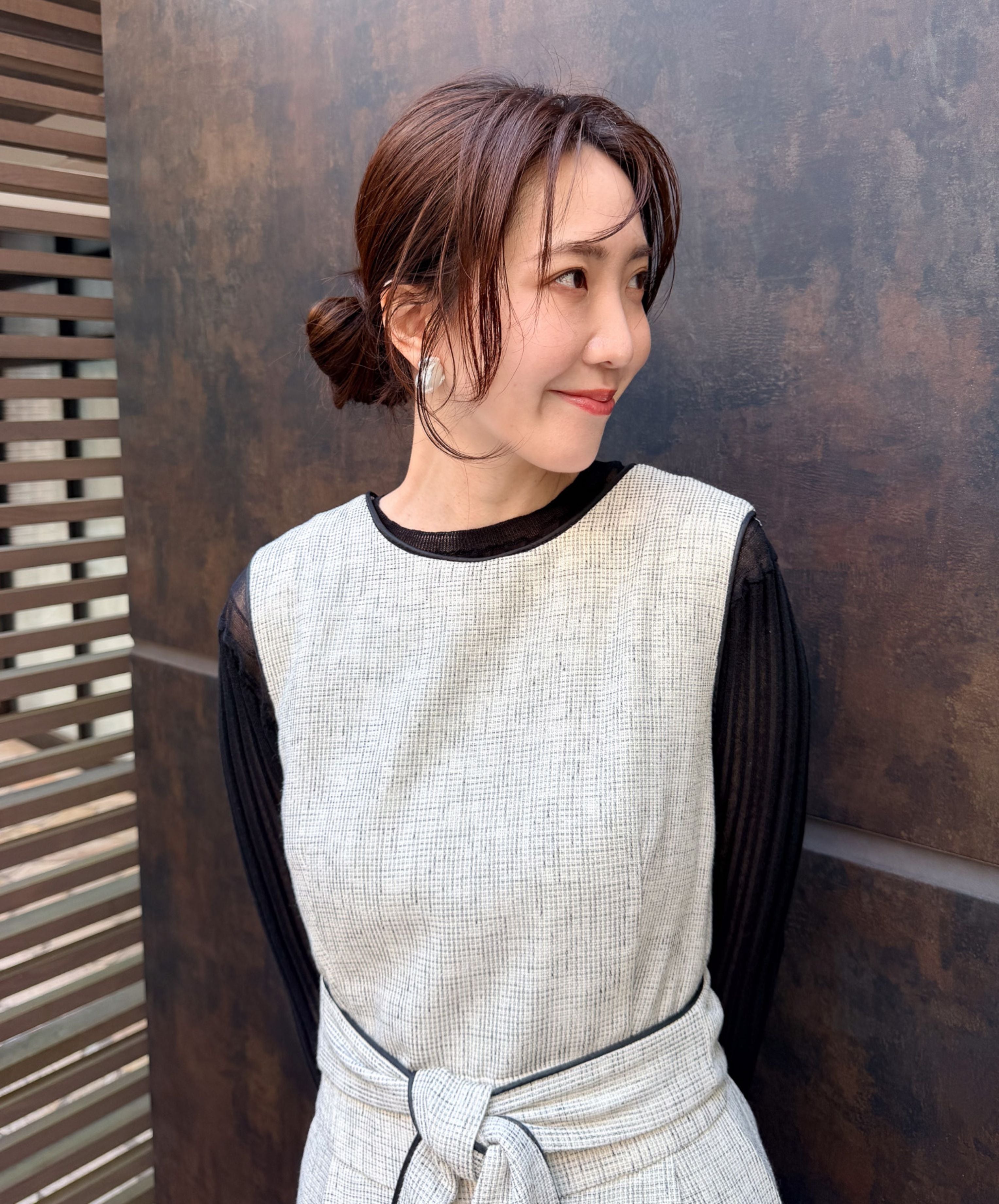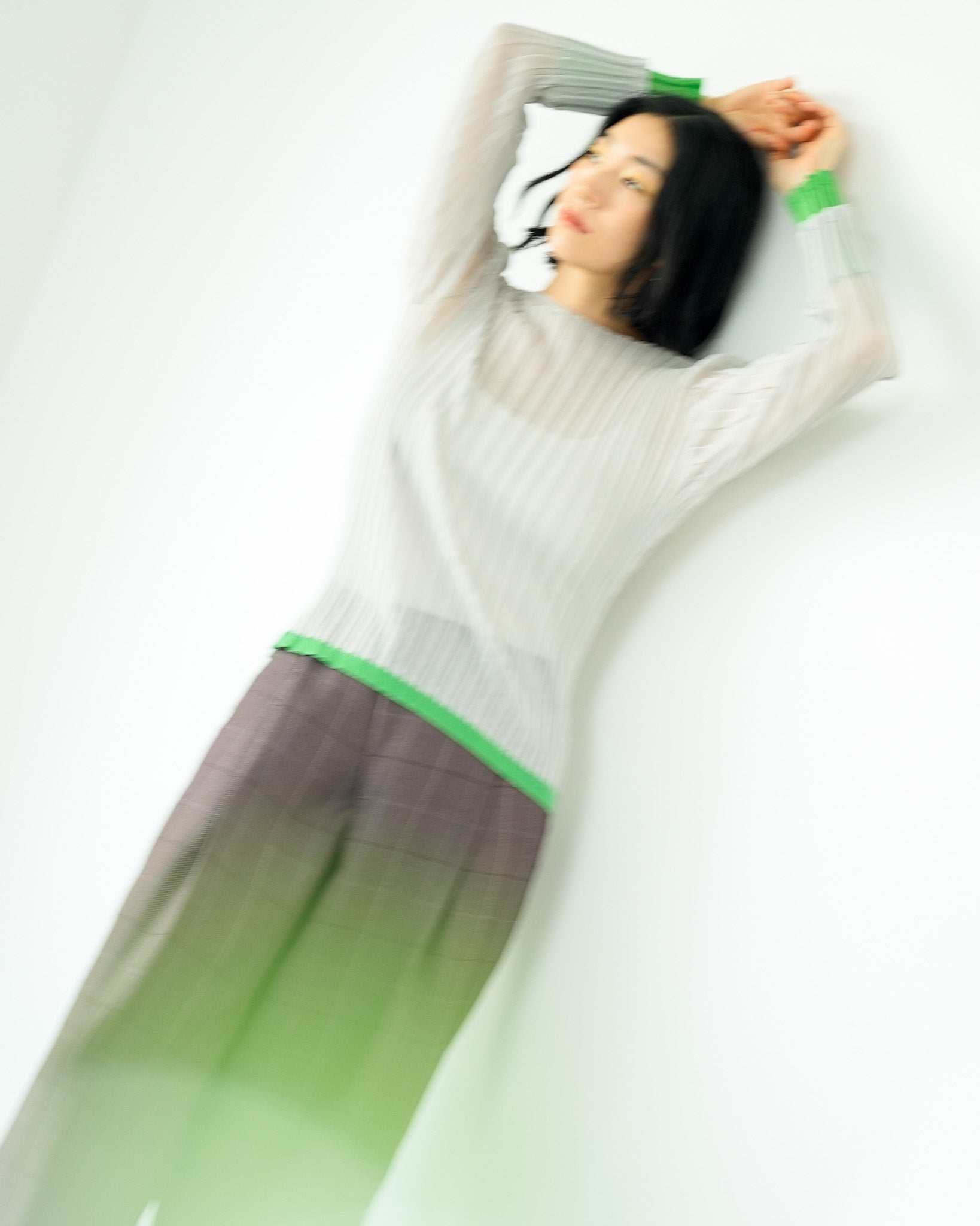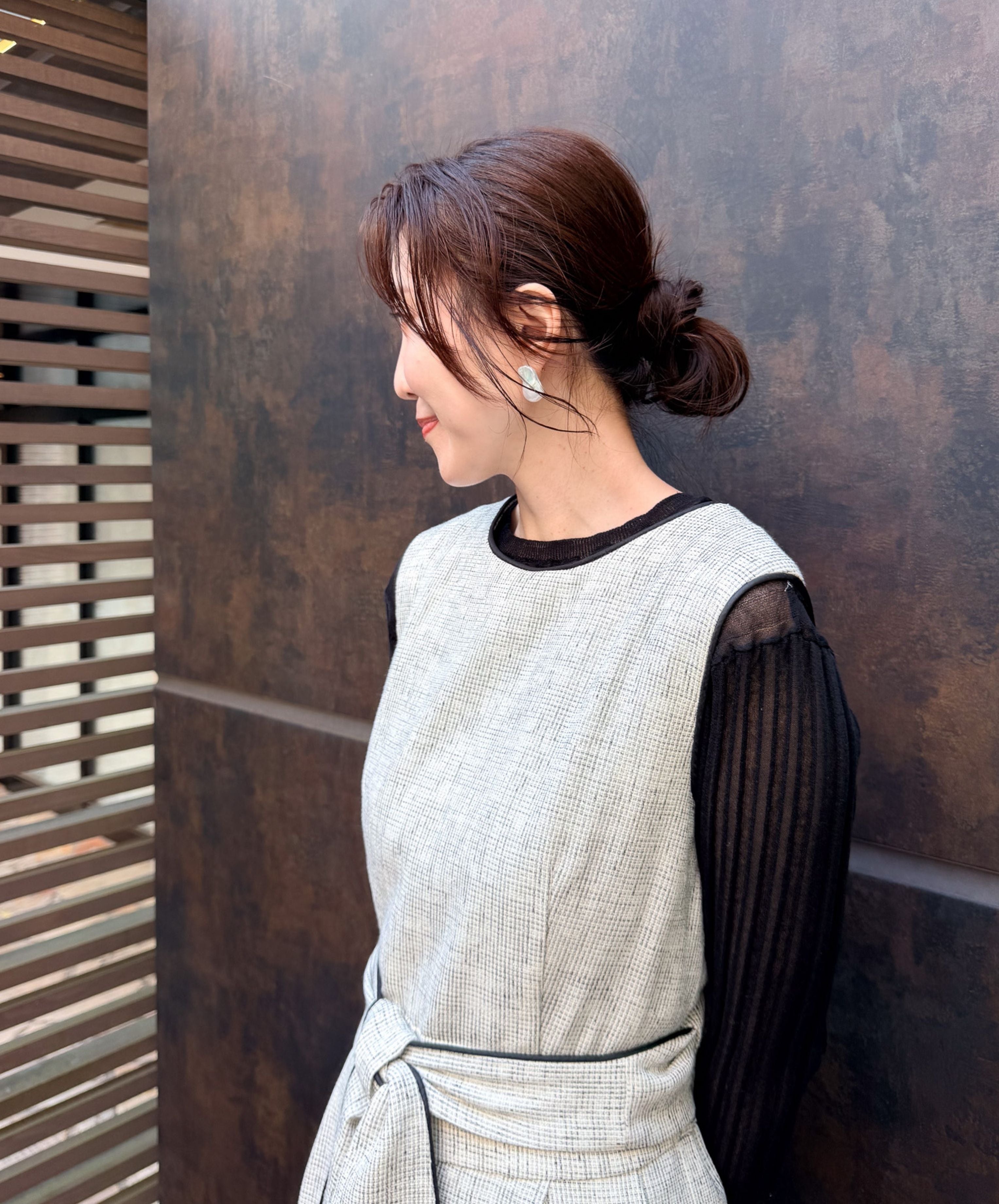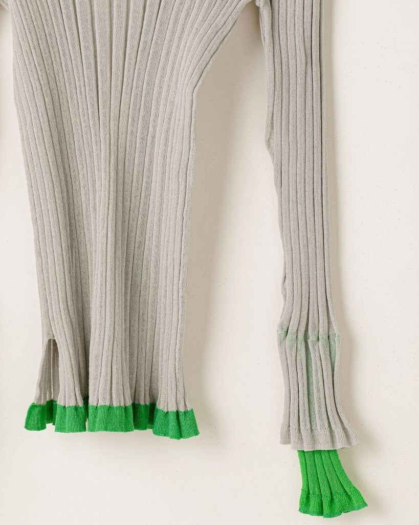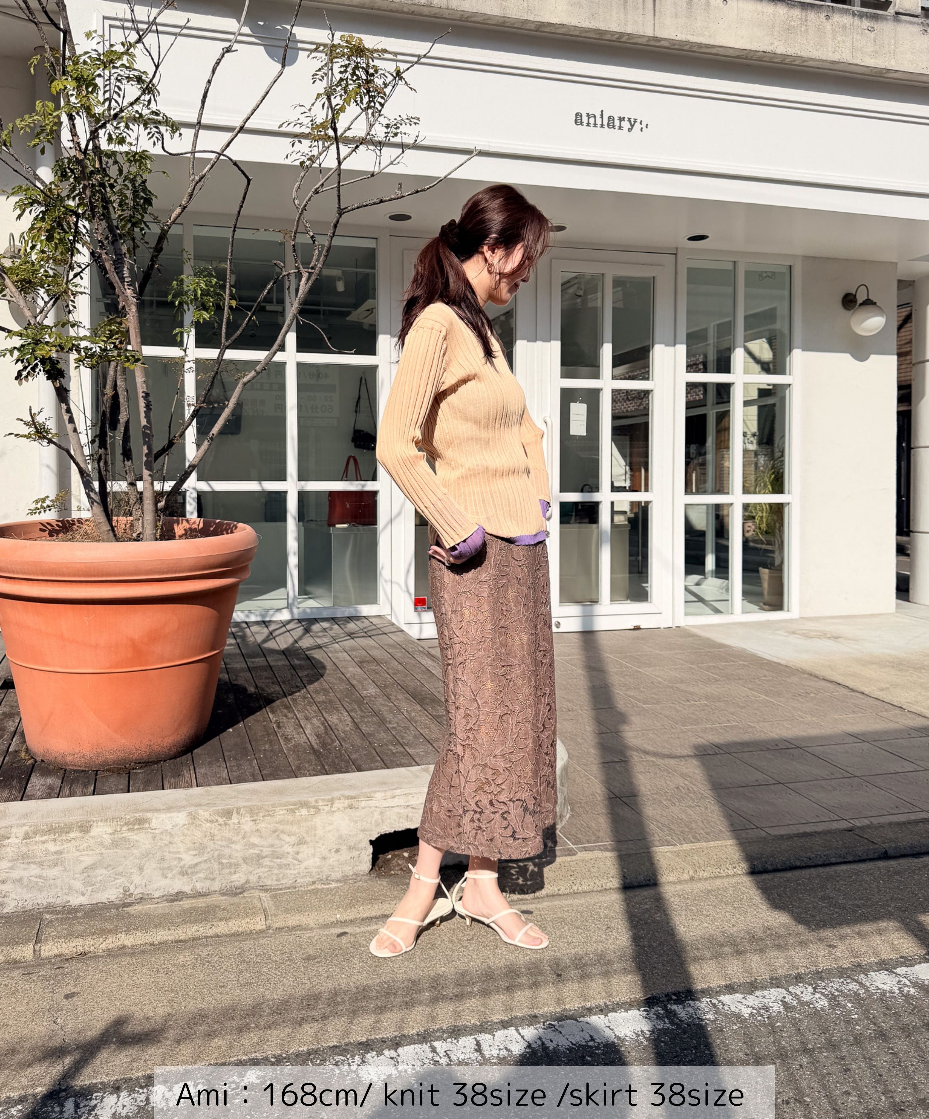 手元が2枚仕立てになったシアーリブニット。甘めに編み立てたリブの程よいシアー感がスタイルに透明感を出し、ミニマムで洗練された印象ながらバックシルエットは大胆にツイストすることでインパクトを。ラリアムーらしいバイカラーがスタイリングのアクセントとなりシンプルながら個性を感じる一枚となっています。アームホールはあえて若干のゆとりを入れることで動きやすさと胸元の張り付きを考慮した設計。バストの張り付きが気になりにくく、腰にはシングルスリットを入れることで自然に腰回りに沿うシルエットを作ります。ジャケットやシャツなどレイヤードスタイルのインナーとしても広く着用いただけます。