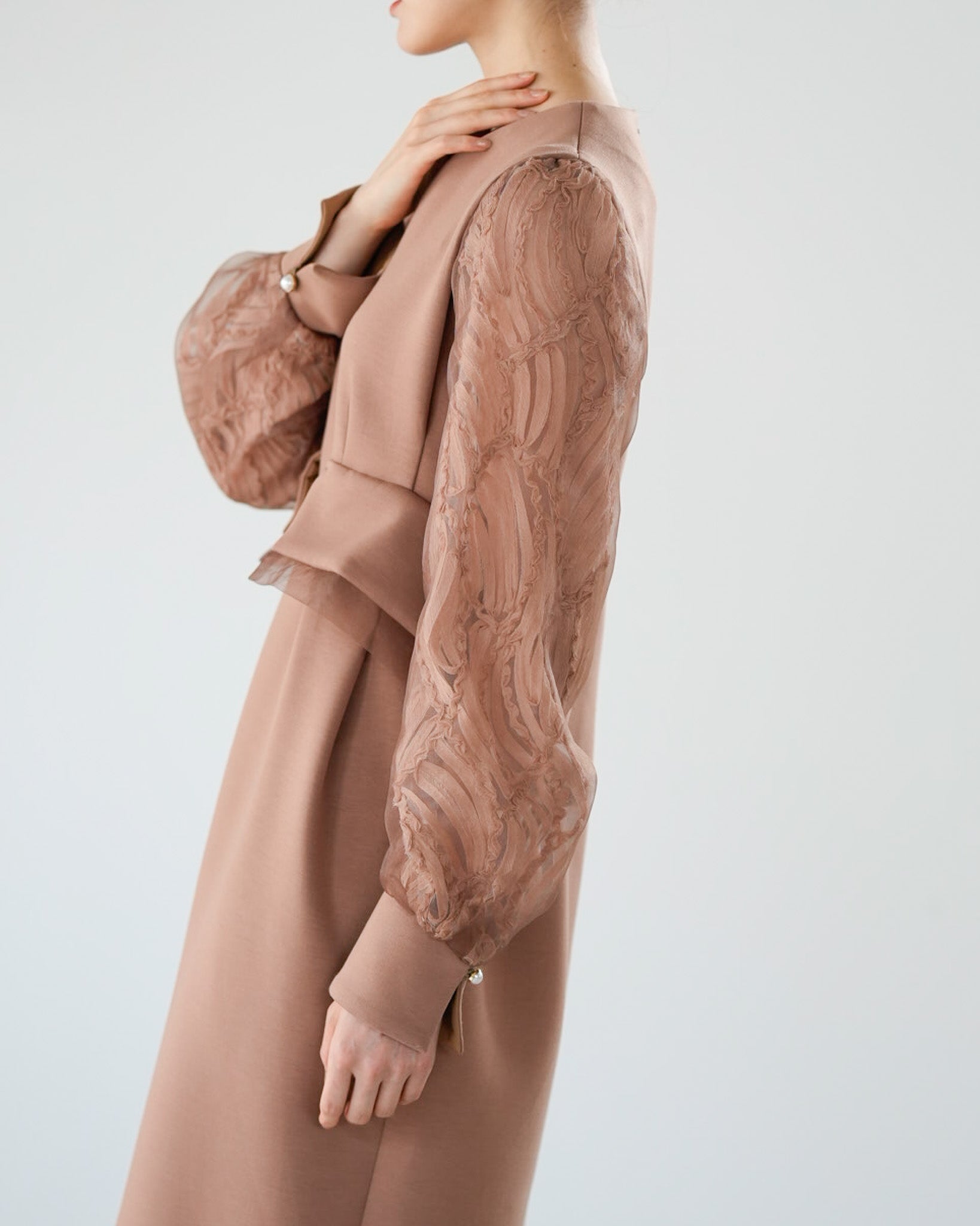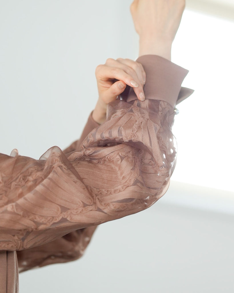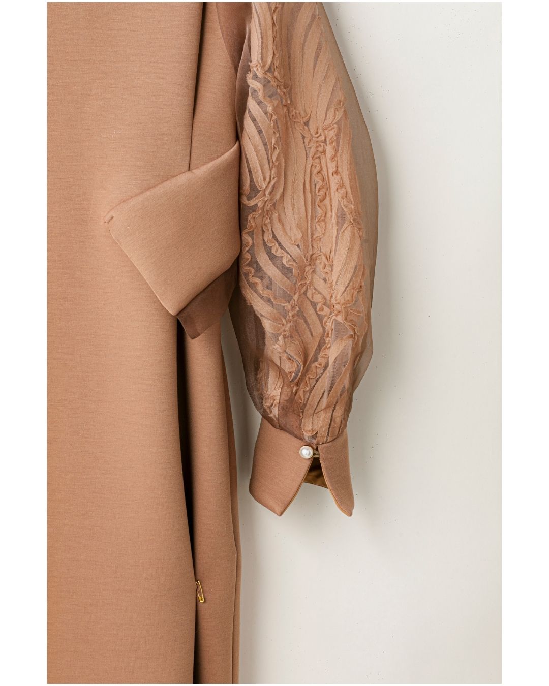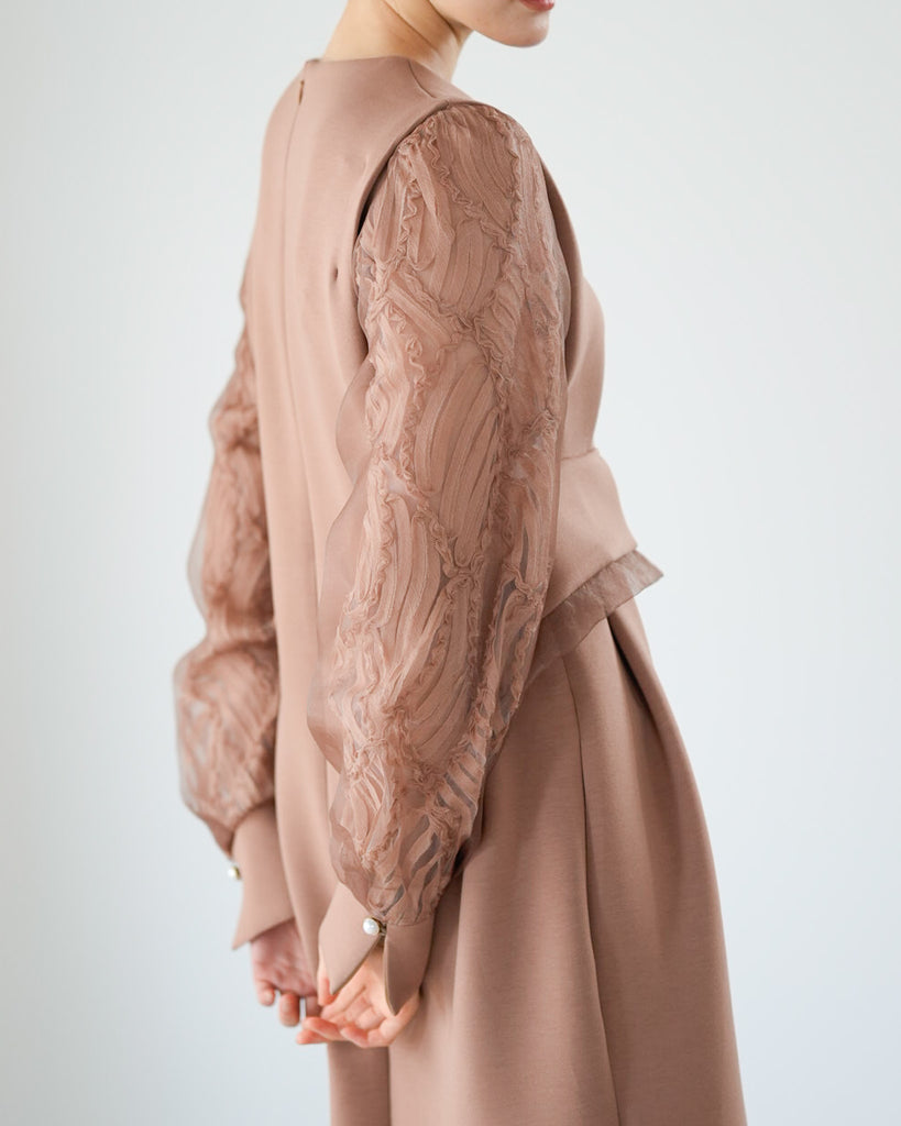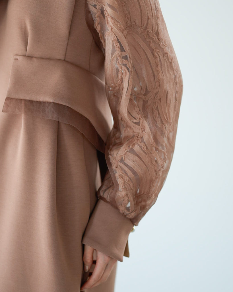 気品と快適さを両立するワンピース。ストレッチ製に優れた中肉のポンチ素材を使用し、しなやかながらもしっかりと厚みがある素材感で身体のラインを拾いすぎず立体的な美しいシルエットを保ちます。着心地も軽く、長時間の着用でもストレスフリー。ヒップにゆとりのあるコクーンラインを採用し、ウエストにはインパクトのあるフラップをつけることでさりげない体型カバー効果も。こだわりのネックラインはデコルテを美しく魅せる曲線的なVライン。顔まわりをすっきりと見せながら、女性らしい柔らかな印象を作ります。一枚で存在感をかもすデザインで食事会や懇親会など日常のイベントから結婚式などオケージョンまで幅広いシーンに対応でき、快適な着心地のワンピースは一枚あると重宝するアイテムです。
