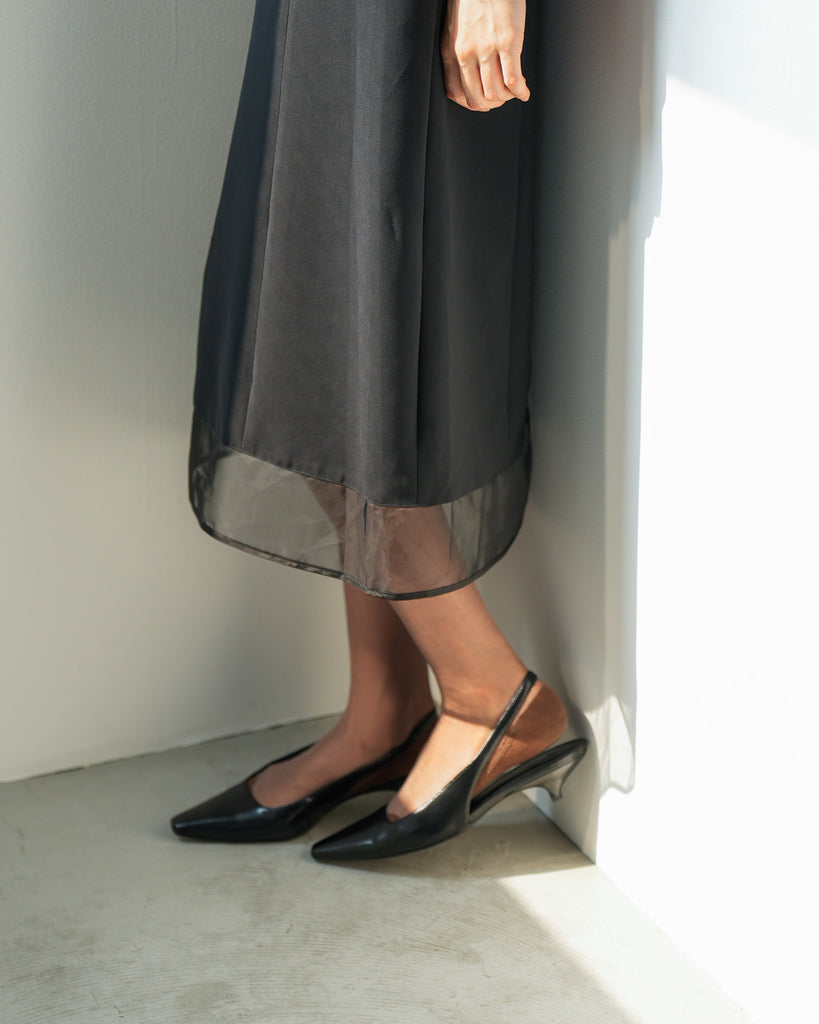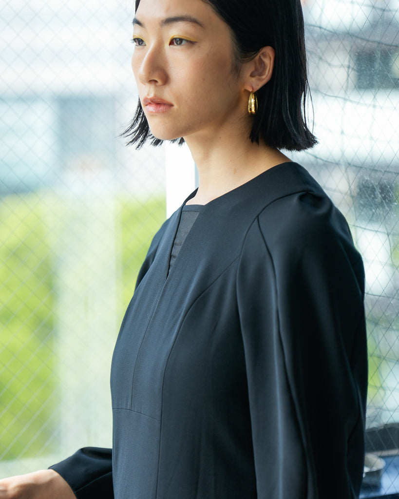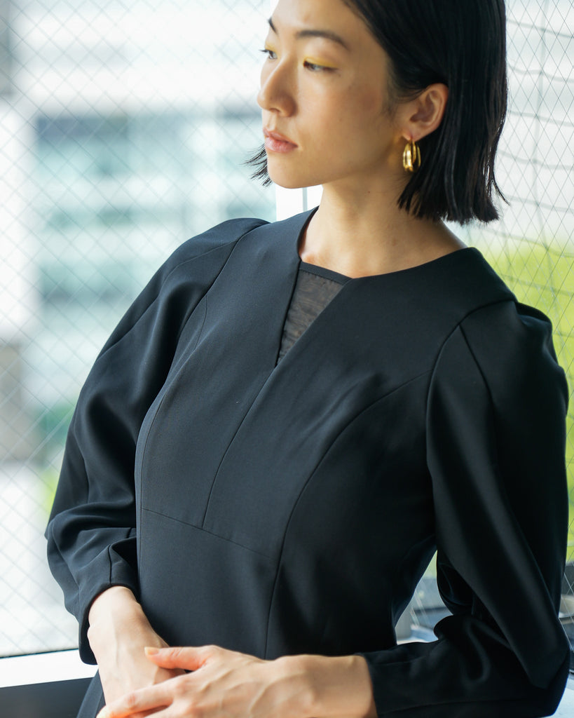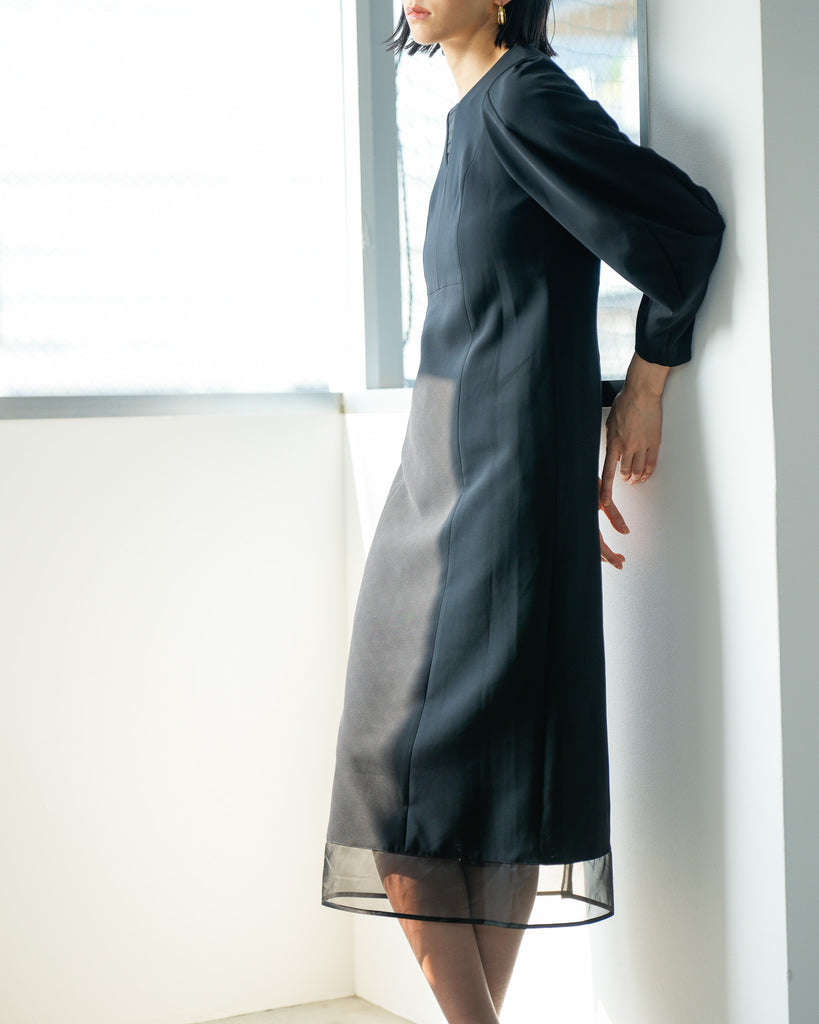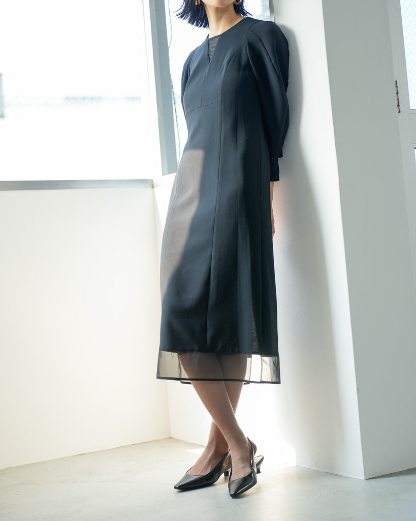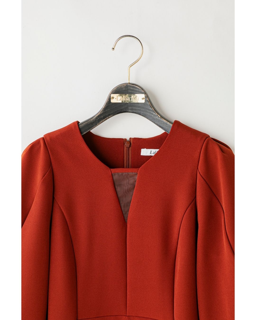 立ち姿を美しく魅せる、特別な日やイベントに最適なワンピース。深みのある美しいテラコッタ系のカラーは肌馴染みがよく、着るだけで華やかに、大人の品格を引き立ててくれます。デコルテと裾にはオーガンジーが施され、デコルテ部分の柔らかな透け感は顔まわりを軽やかに品よく彩り、大人な抜け感を演出します。足元の動くたびに揺れるオーガンジーは全体に軽やかさと女性らしいエレガンスを添え、洗練された印象を与えます。パネルラインで生み出される曲線的なシルエットは立ち姿を凛と見せ、付かず離れずのゆとりで気になるヒップラインをカバーしながら、スラリとしたIライン効果も。優雅なドレープがシルエットをより一層美しく見せてくれる一着です。アクセサリーや小物の合わせ次第で着る人の個性を引き立て、少し特別なおでかけから、結婚式などのオケージョンにも活躍します。