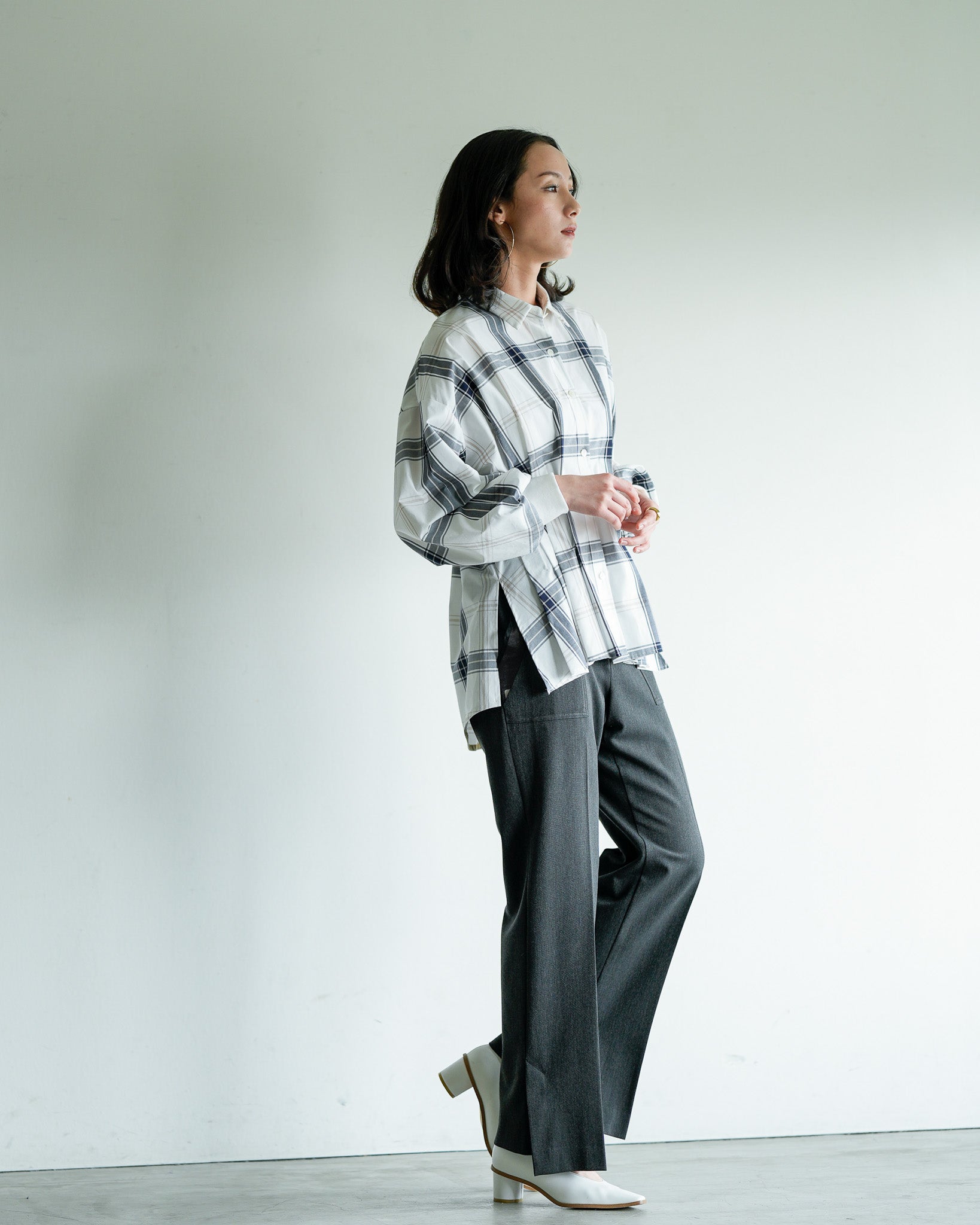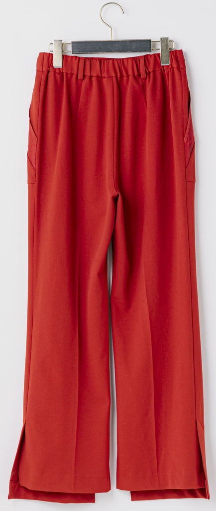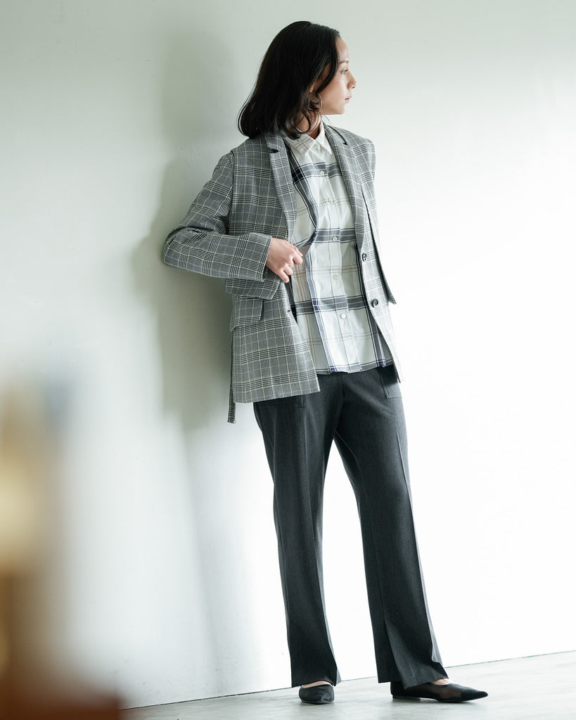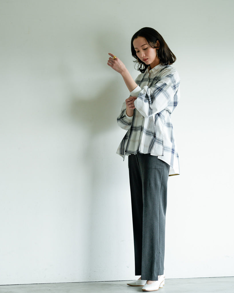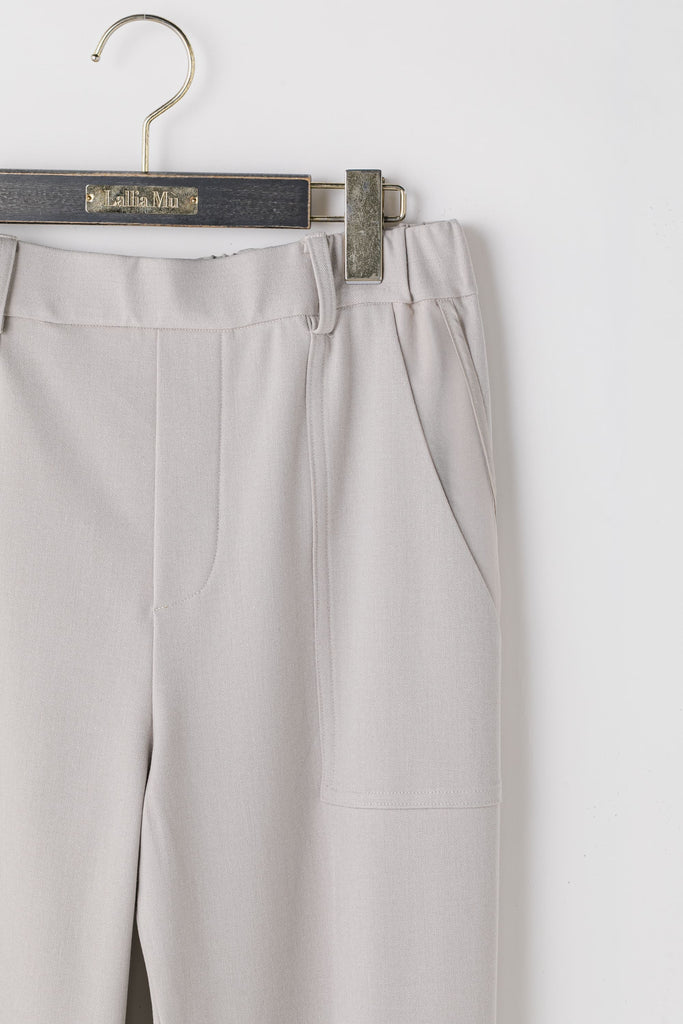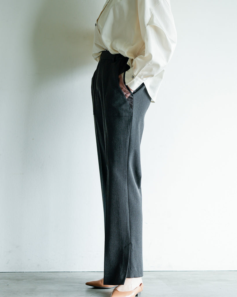 楽な着心地でスタイリッシュ見えなイージーパンツ。ソフトな風合いと優れた保温効果を持つ裏起毛素材で、伸縮性に優れ、蒸れにくくしなやかな肌触りが特徴的です。汗など水分を吸収して熱に変える特性を持つため冬も暖かく着用できます。イージーパンツでは特に気になるシルエットにもこだわり、スタイリングしやすいよう広すぎず細すぎずなストレートシルエットを採用。裾の両サイドに入った開きにはスタイルアップを強調する秘訣が。前裾を長く、後裾を短かくし前後の丈差をつけることで(3cm)踵は付かずとも足の甲の部分まで隠れ延長された視覚効果で脚長に。センタープレスが入りきちんと感を与え、日常の様々なシーンで穿けるあったかベーシックボトムです。