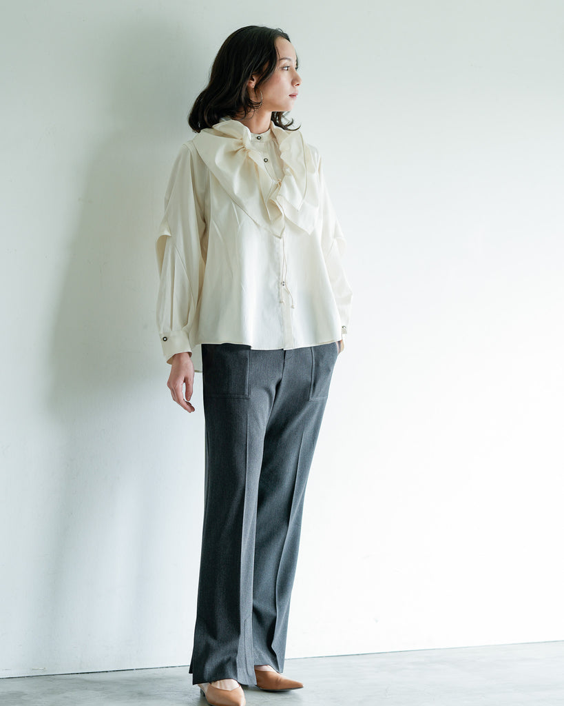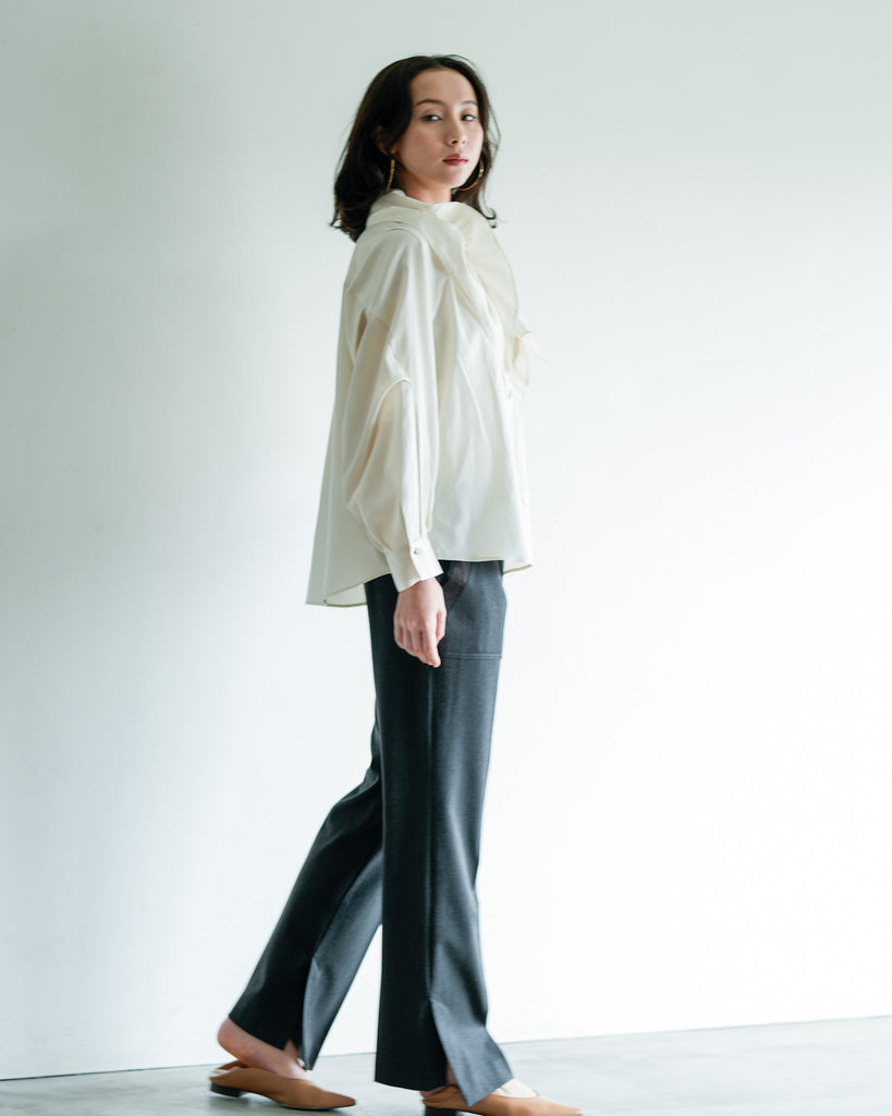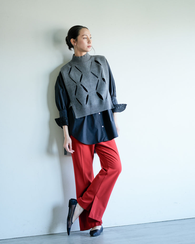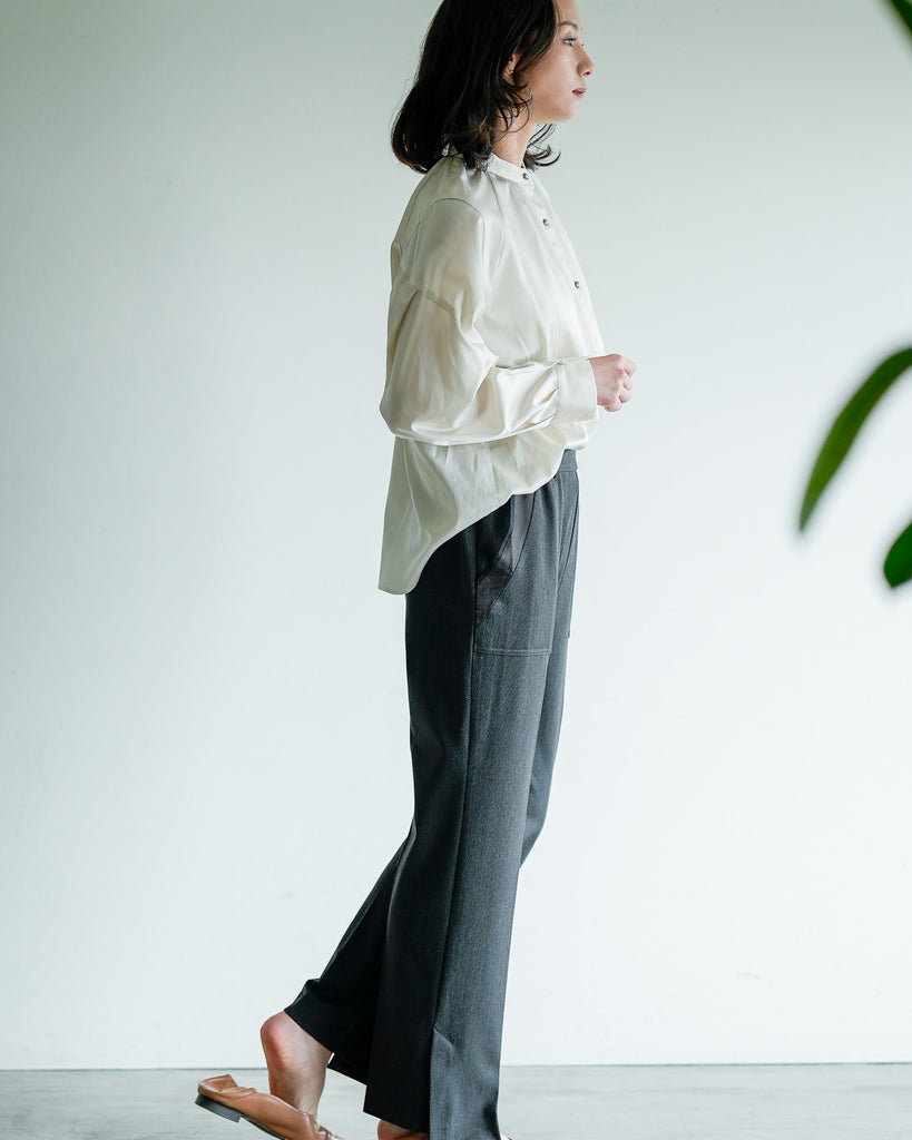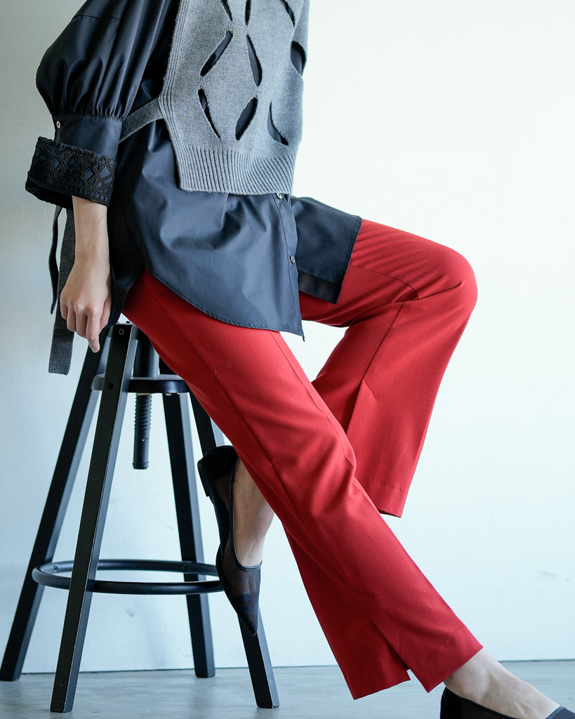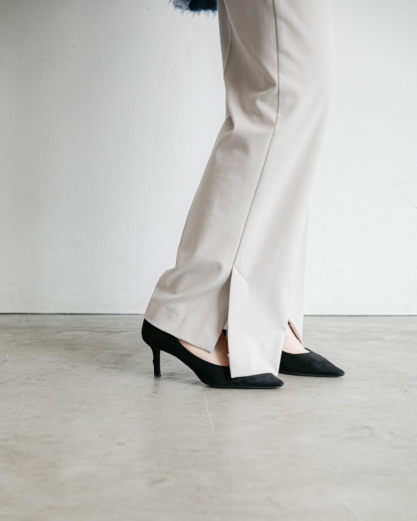 楽な着心地でスタイリッシュ見えなイージーパンツ。ソフトな風合いと優れた保温効果を持つ裏起毛素材で、伸縮性に優れ、蒸れにくくしなやかな肌触りが特徴的です。汗など水分を吸収して熱に変える特性を持つため冬も暖かく着用できます。イージーパンツでは特に気になるシルエットにもこだわり、スタイリングしやすいよう広すぎず細すぎずなストレートシルエットを採用。裾の両サイドに入った開きにはスタイルアップを強調する秘訣が。前裾を長く、後裾を短かくし前後の丈差をつけることで(3cm)踵は付かずとも足の甲の部分まで隠れ延長された視覚効果で脚長に。センタープレスが入りきちんと感を与え、日常の様々なシーンで穿けるあったかベーシックボトムです。